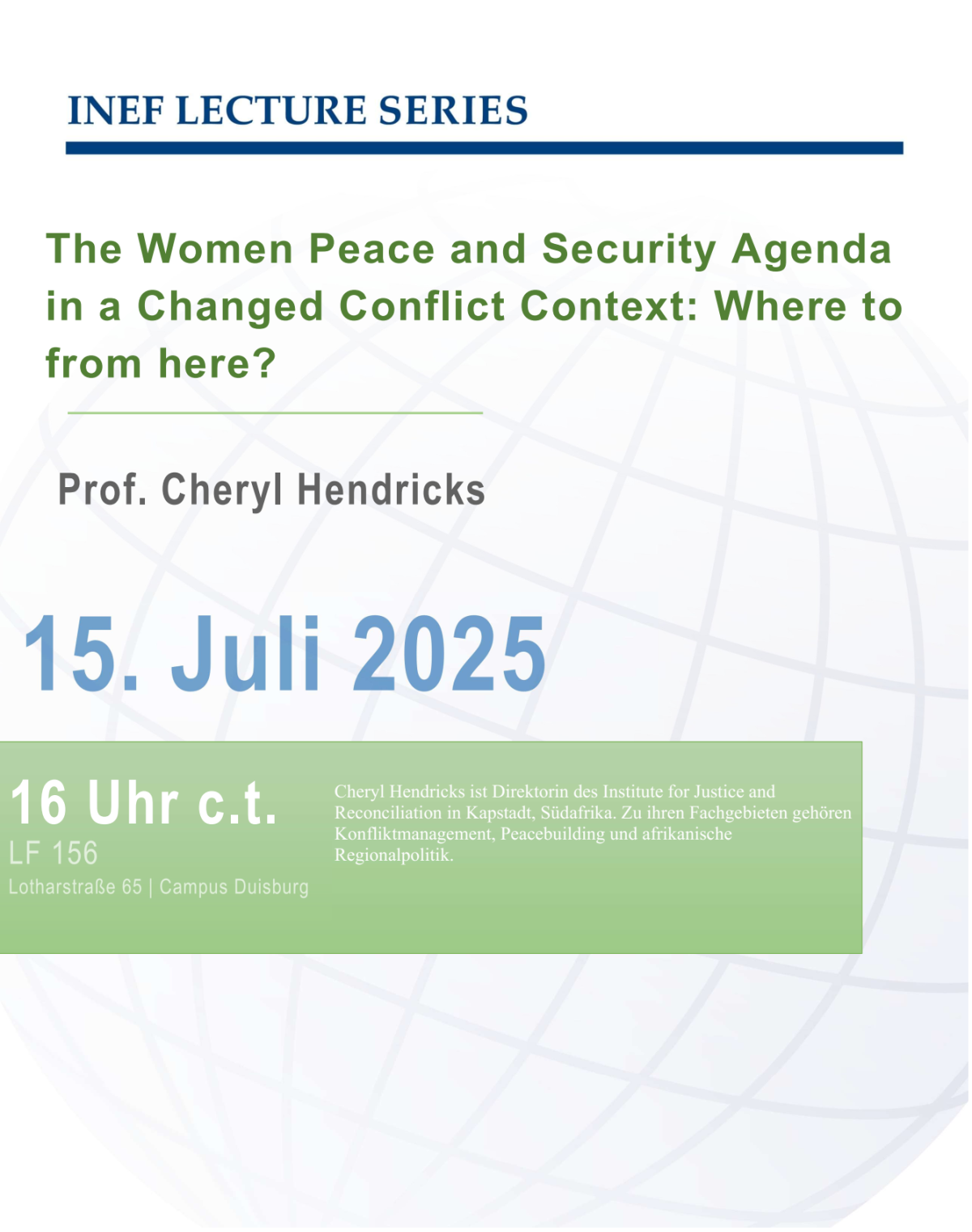 INEF Lecture SeriesThe Women Peace and Security Agenda in a Changed Conflict Context: Where to from here?