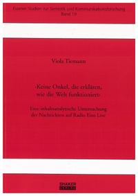 Annika Daniel Semiotische Fundamente gesellschaftlicher Wirklichkeitskonstruktion. Aachen 2006 100 Seiten, 19,80 EUR. ISBN 3-8322-4270-8 |