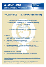 10 Jahre UDE - 10 Jahre Gleichstellung Frauenversammlung und Festveranstaltung zum Internationalen Frauentag am 08. März 2013