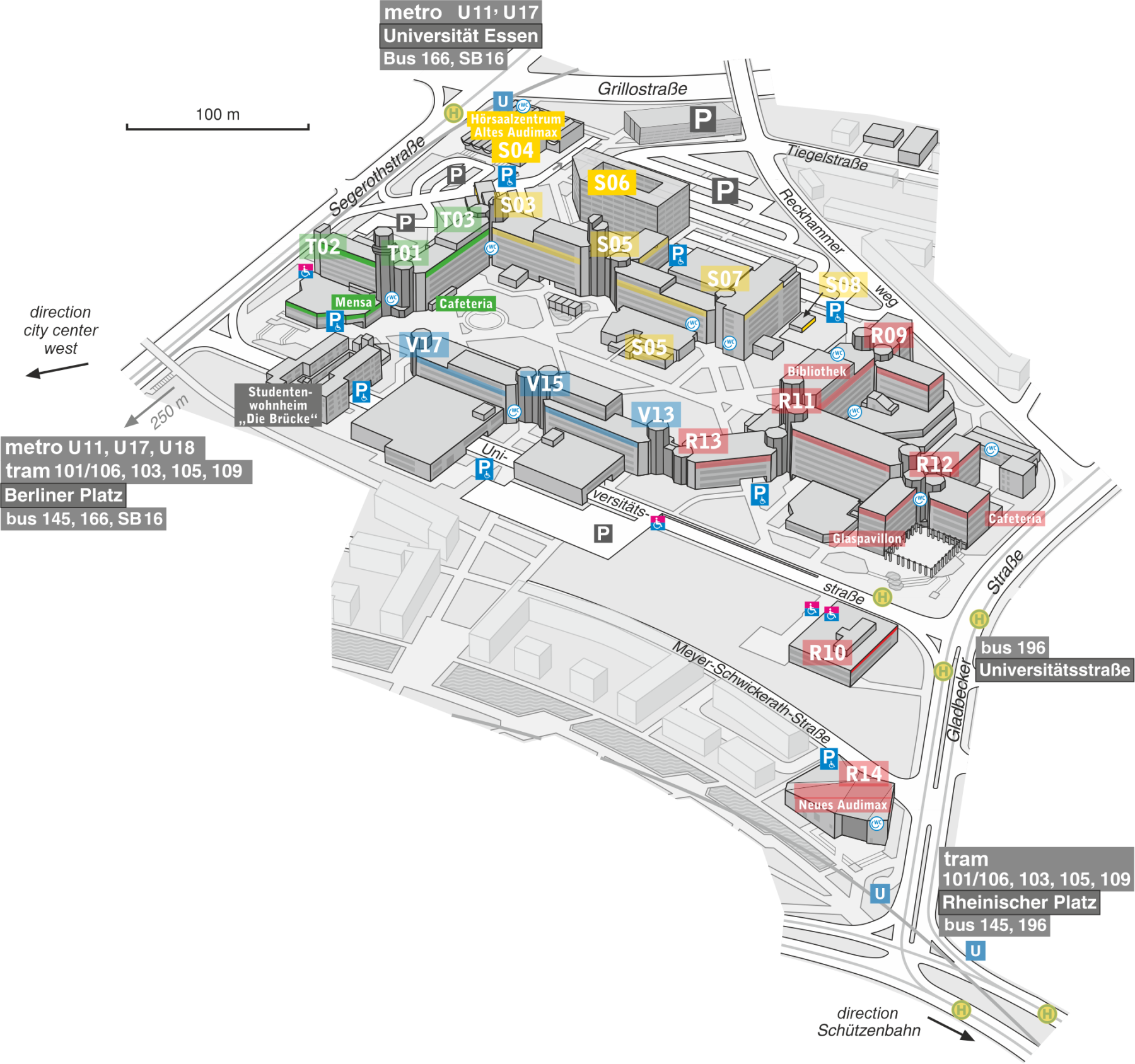 If you´re coming by car, please use UDE´s overground parking (Parkplatz Uni Süd or Parkhaus, Reckhammerweg) in close proximity (<5 min walking distance) to the meeting venue.