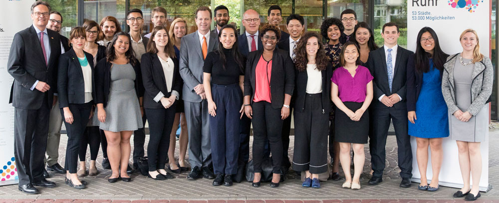 Zum Auftakt begrüßten sie jetzt der höchste US-Diplomat im äußersten Westen Deutschlands, Generalkonsul Michael R. Keller, und Dr. Thomas A. Lange, Co-Moderator des Initiativkreises Ruhr. Das im sechsten Jahr angebotene Programm besteht aus zwei Phasen: Im Juni besuchen die RuhrFellows eine Summer-School. Das akademische Programm organisiert die UA Ruhr in diesem Jahr unter der Federführung der Universität Duisburg-Essen.