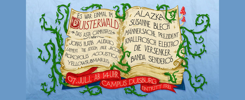Ein verwunschener Wald voller Klänge und Genüsse – das klingt spannend. Der Allgemeine Studierendenausschuss (AStA) verspricht, einen solchen am 7. Juli auf den Campus Duisburg zu zaubern. Dann lädt er zum Campusfest "Es war einmal im Duisterwald".