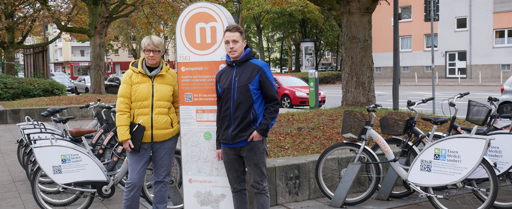 Im Bild (v.l.): Kerstin Engel, Dezernat Gebäudemanagement, Roman Fleischhauer, Fa. Nextbike.