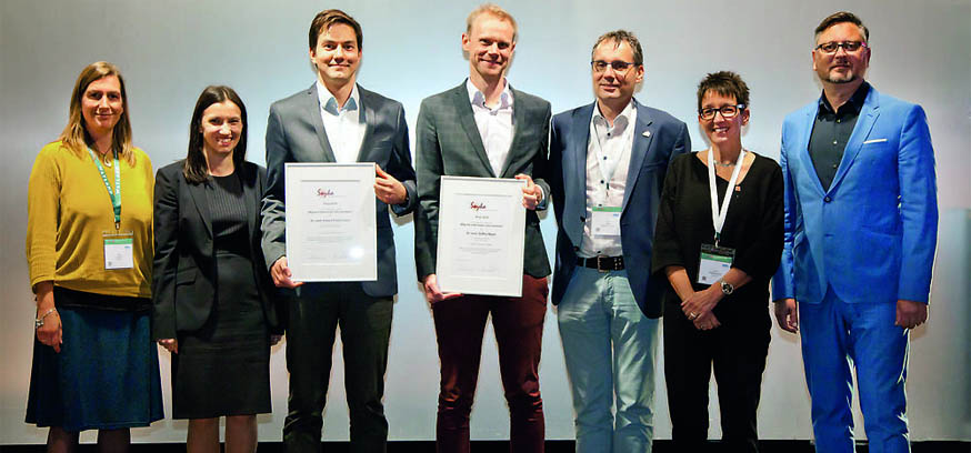 Im Bild: Dr. Steffen Nägel (M.) beim Deutschen Schmerzkongresses in Mannheim. Der zweite Preisträger (3.v.l.) ist Dr. Robert Fleischmann aus Greifswald.