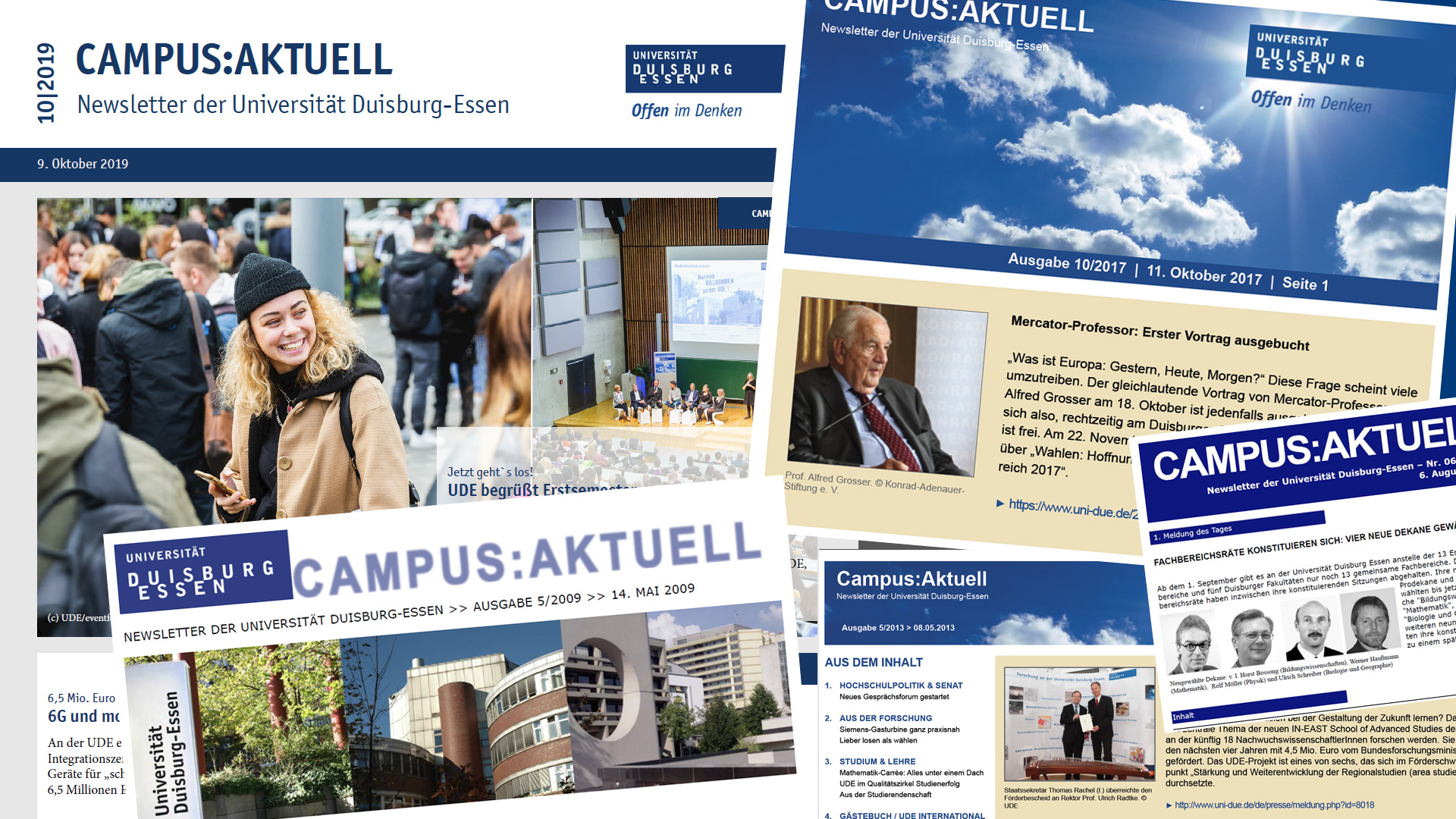 Mit dieser Meldung startete am 1. März 2004 die erste Ausgabe des UDE-Newsletters CAMPUS:AKTUELL. Der Service sollte "den Informationsfluss zwischen den Einrichtungen in Duisburg und Essen verdichten" und Nachrichten "auf schnelle und direkte Art" übermitteln. Das hat geklappt.