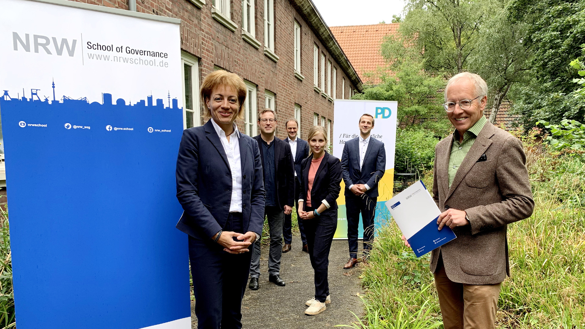 Im Hintergrund zu sehen: Markus Hoffmann (NRW School of Governance), Jan Wilkens (PD), Anne Goldmann (NRW School of Governance) und Dennis Fischer (PD).