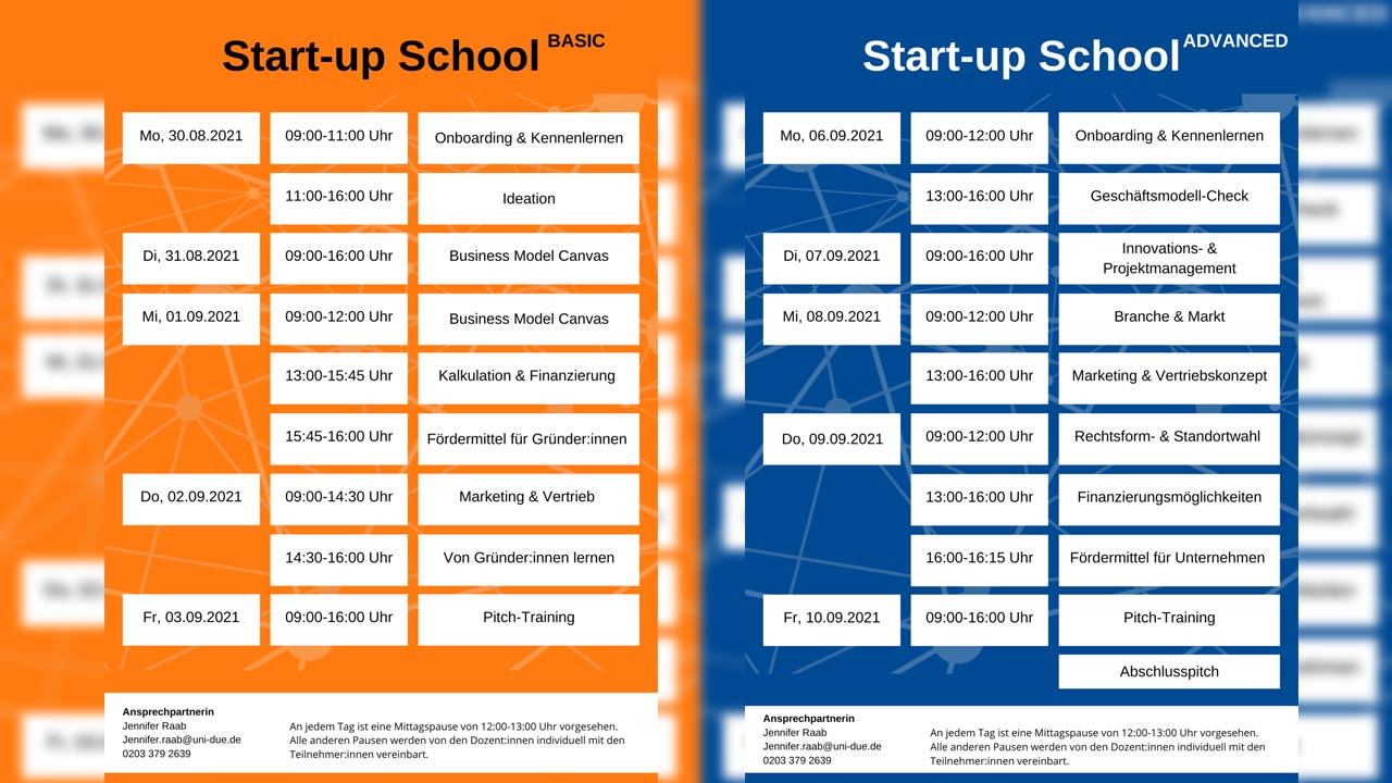 Vom 6. bis zum 10. September arbeitet die „Start-up SchoolADVANCED“ mit Teams und Einzelpersonen an der Umsetzung konkreter Gründungsvorstellung. Die Teilnahme ist an die Belegung der „Start-up SchoolBASIC“ oder ein vorheriges Coachinggespräch gebunden.
