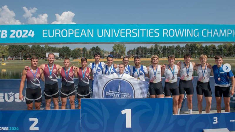 Voll durchgezogen hat das Doppelvierer-Team der Universität Duisburg-Essen bei den Europäischen Hochschulmeisterschaften im Rudern: Marvin Lebede, Sami Wainwright, Simon Jakob Leibmann und Niklas Lebede konnten sich am 31. August über einen dritten Platz und den Gewinn der Bronzemedaille freuen. Das UDE-Boot, das sich nur der Konkurrenz der University of Gustave Eiffel aus Champs-sur-Marne und der Budapest University of Technology beugen musste, stand in der Klasse M4x nach der Silbermedaille im polnischen Bydgoszcz 2023 nun in Zagreb im zweiten Jahr in Folge auf dem Treppchen der kontinentalen Wettbewerbe.