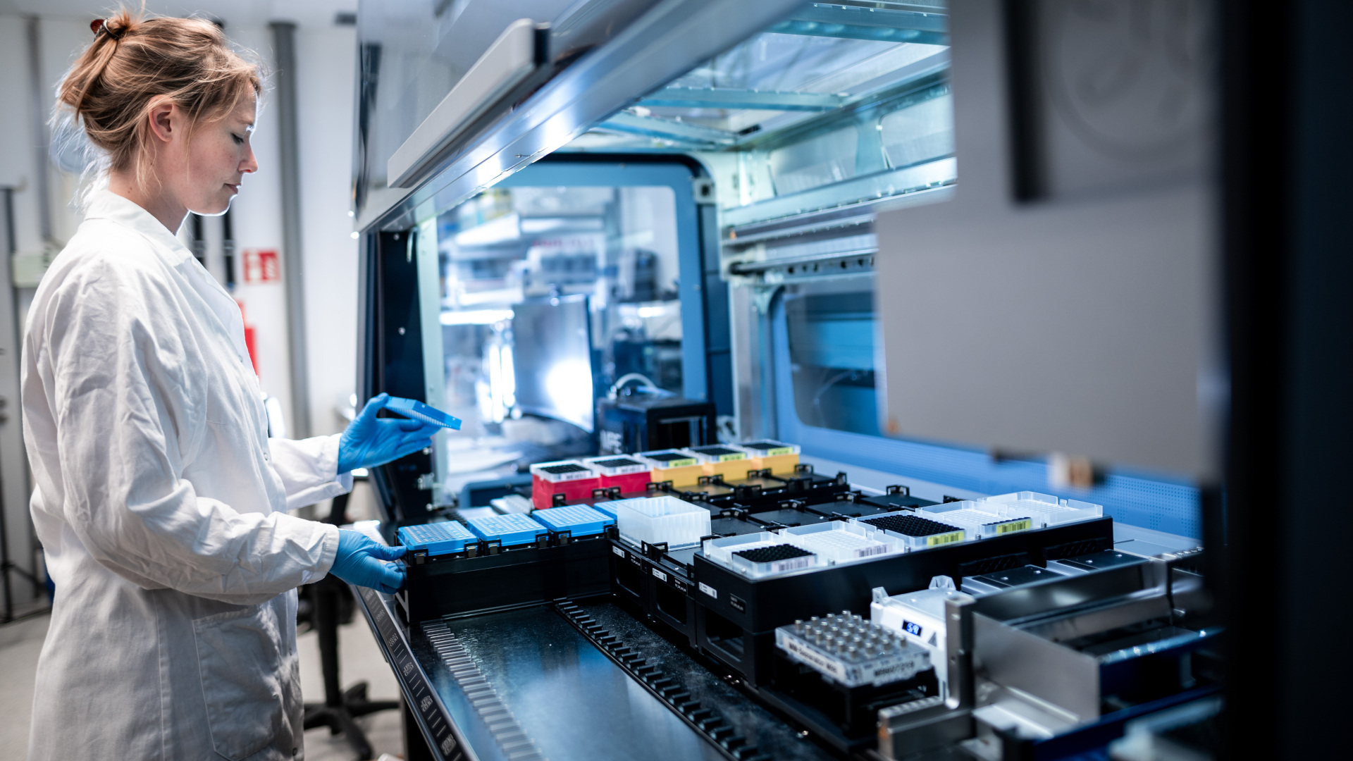 Im Bild: Labormanagerin Charlotte Frie bei der Arbeit mit dem Analyse-Roboter, dem Herzstück des in der Studie vorgestellten Workflows zum Insektenmonitoring über DNA-Barcodes.
