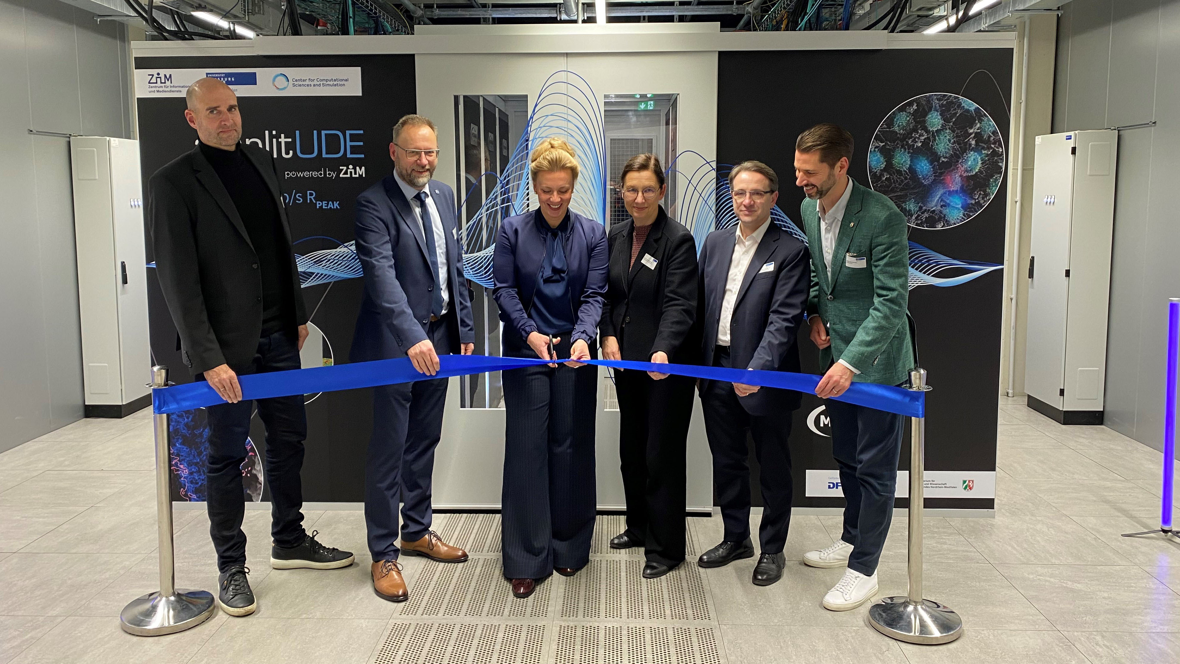Im Datacenter Duisburg-Wedau der Universität Duisburg-Essen (UDE) nimmt amplitUDE, der neue Hochleistungsrechner, heute offiziell den Betrieb auf. „In Nordrhein-Westfalen wird die KI-Zukunft für die Menschen erforscht und gestaltet. Der Schlüssel für ‚KI made in NRW‘ ist Rechenleistung. Der Super-Computer ‚amplitUDE‘ gehört zu den energieeffizientesten Rechnern der Welt und eröffnet unseren Wissenschaftlerinnen und Wissenschaftlern zum Beispiel neue Möglichkeiten, individuell auf jede Patientin und jeden Patienten zugeschnittenen Diagnose- und Therapiemöglichkeiten zu entwickeln und an smarten Lösungen für bessere und saubere Mobilität zu arbeiten“, erklärte Ministerin Ina Brandes bei der Einweihung.