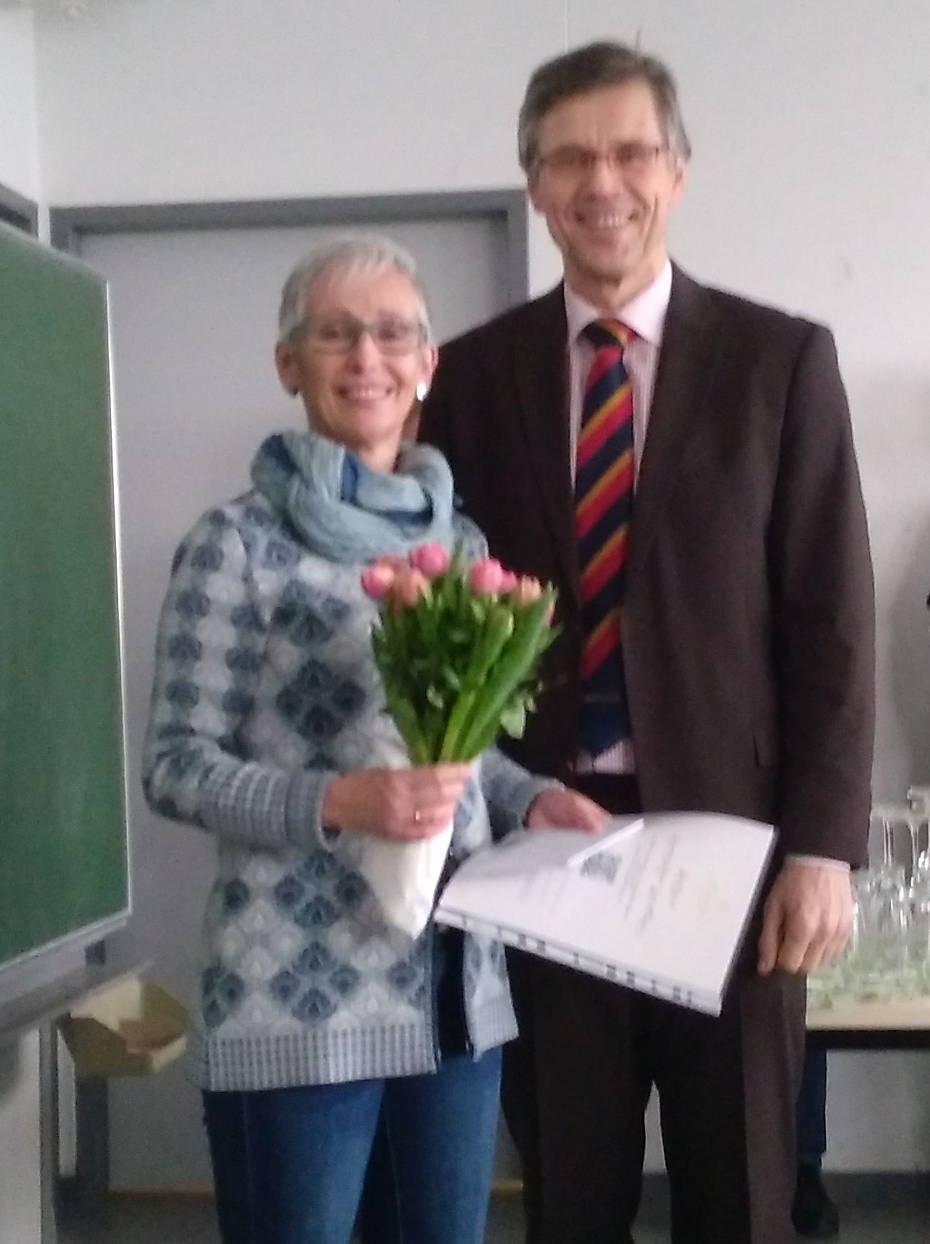 Im Rahmen einer Abschiedsfeier des Instituts verabschiedete Herr Prof. Schart mit herzlichem Dank und besten Wünschen für die Zukunft Frau Dr. Kaiser, die an die TU Braunschweig als Professorin berufen wurde, und Frau Menning, die in den Ruhestand ging. Foto 1 zeigt Prof. Kaiser und Prof. Schart, Foto 2 Frau Menning und Herrn Schart.
