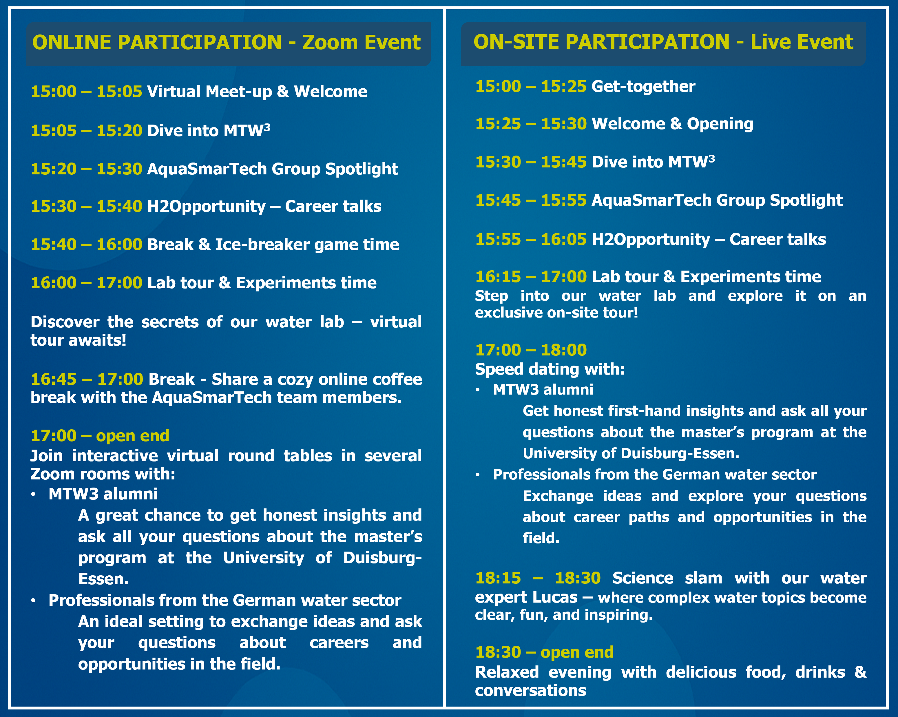 Find out more about our water professionals — online at the virtual round table or in person at our speed dating. → Here