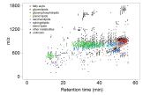Scatterplot of an Orbitrap high resolution LC-MS analysis of the human plasma lipidome