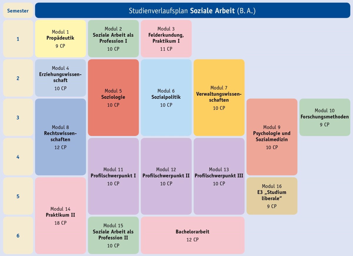 Der Studiengang „Soziale Arbeit (B.A.)", der an der Universität Duisburg-Essen angeboten wird, ist ein interdisziplinär ausgerichtetes Studienprogramm, das neben psychologischen und pädagogischen u.a. auch soziologische und politikwissenschaftliche sowie rechtliche und wirtschaftliche Grundlagenkenntnisse und Methodenkenntnisse vermittelt.