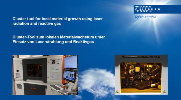 Cluster tool for local material growth using laser radiation and reactive gas