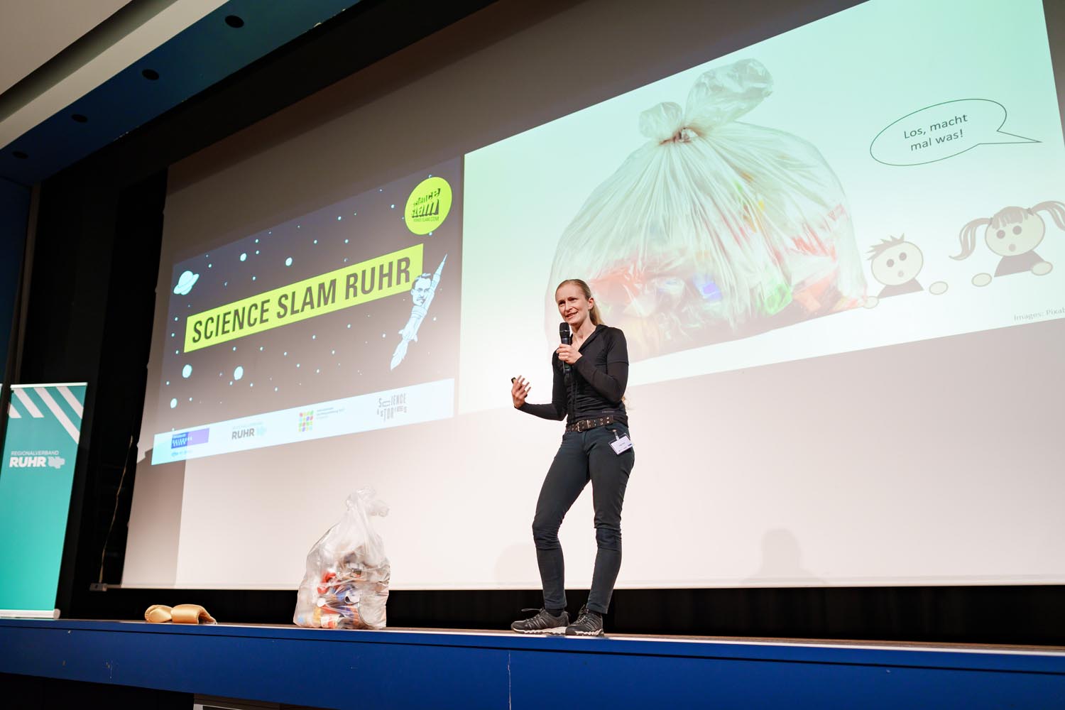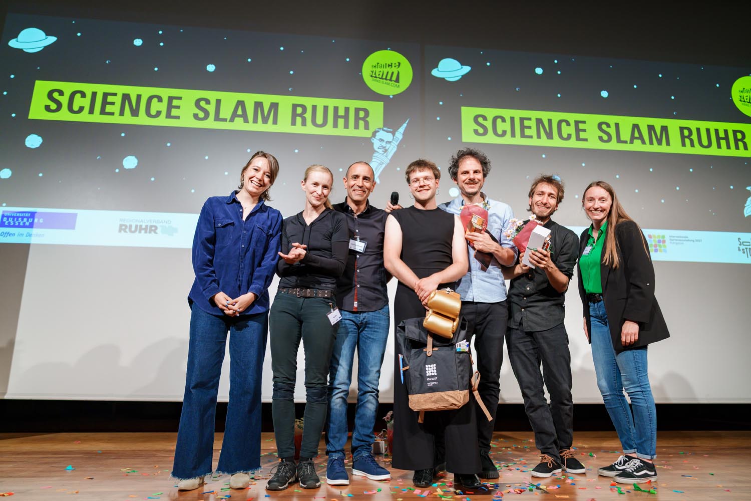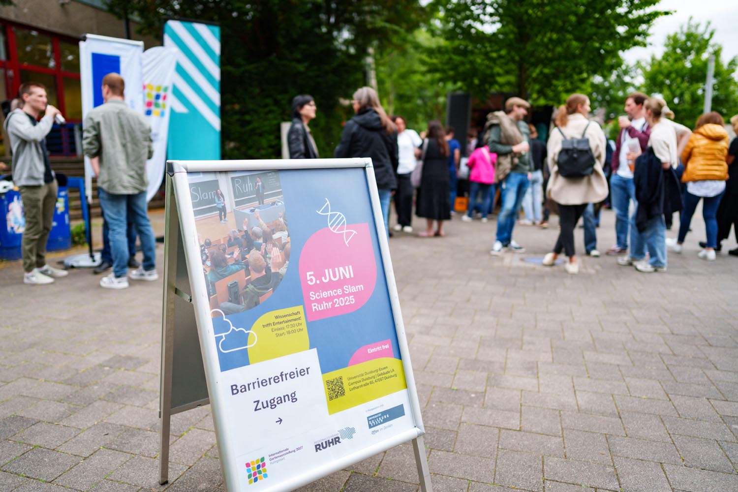 Aha-Effekt inbegriffen! Beim Science Slam an der Universität Duisburg-Essen präsentierten Wissenschaftler:innen am 5. Juni ihre Forschung etwas anders als sonst in Hörsälen üblich: laienverständlich, lustig, verblüffend.Am Ende entschied das Publikum: Der Vortrag von Coco Vetter war der beste.