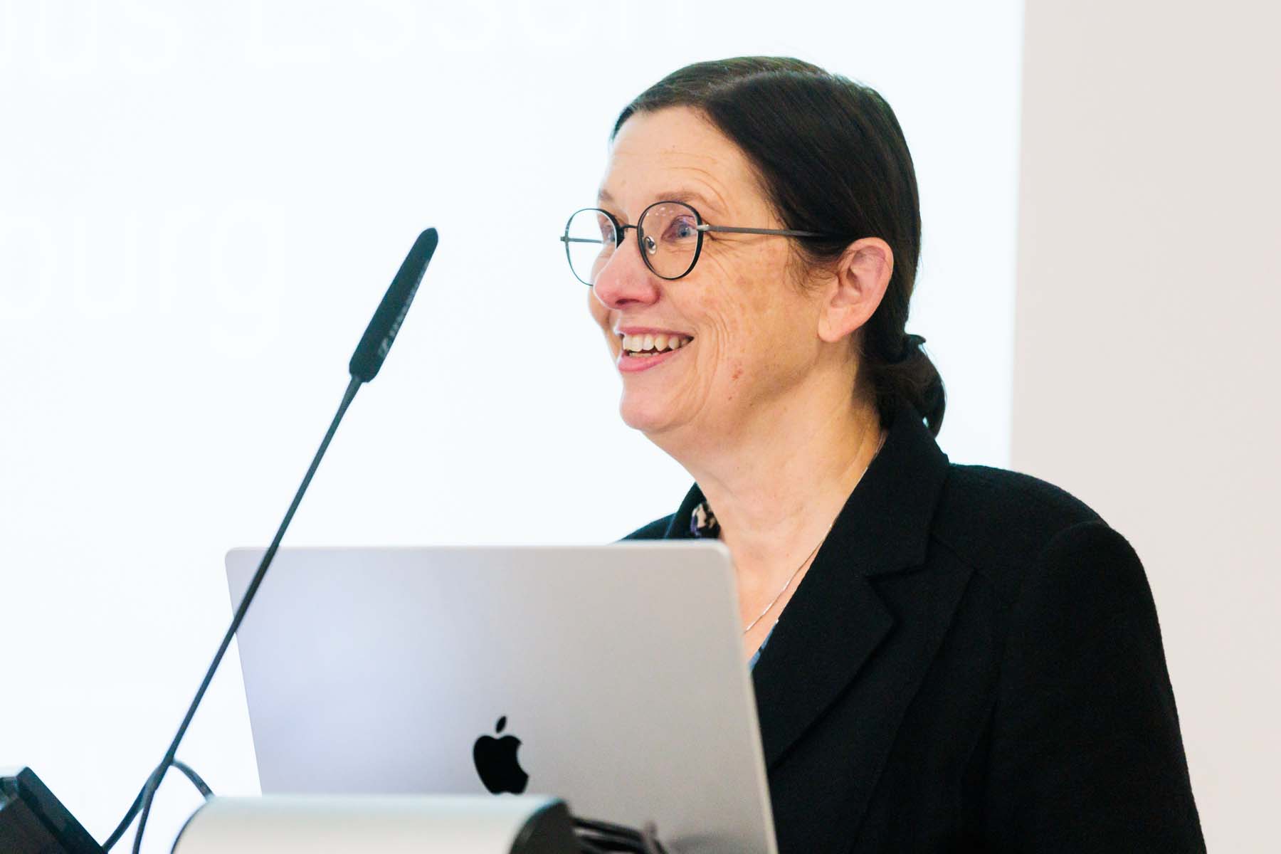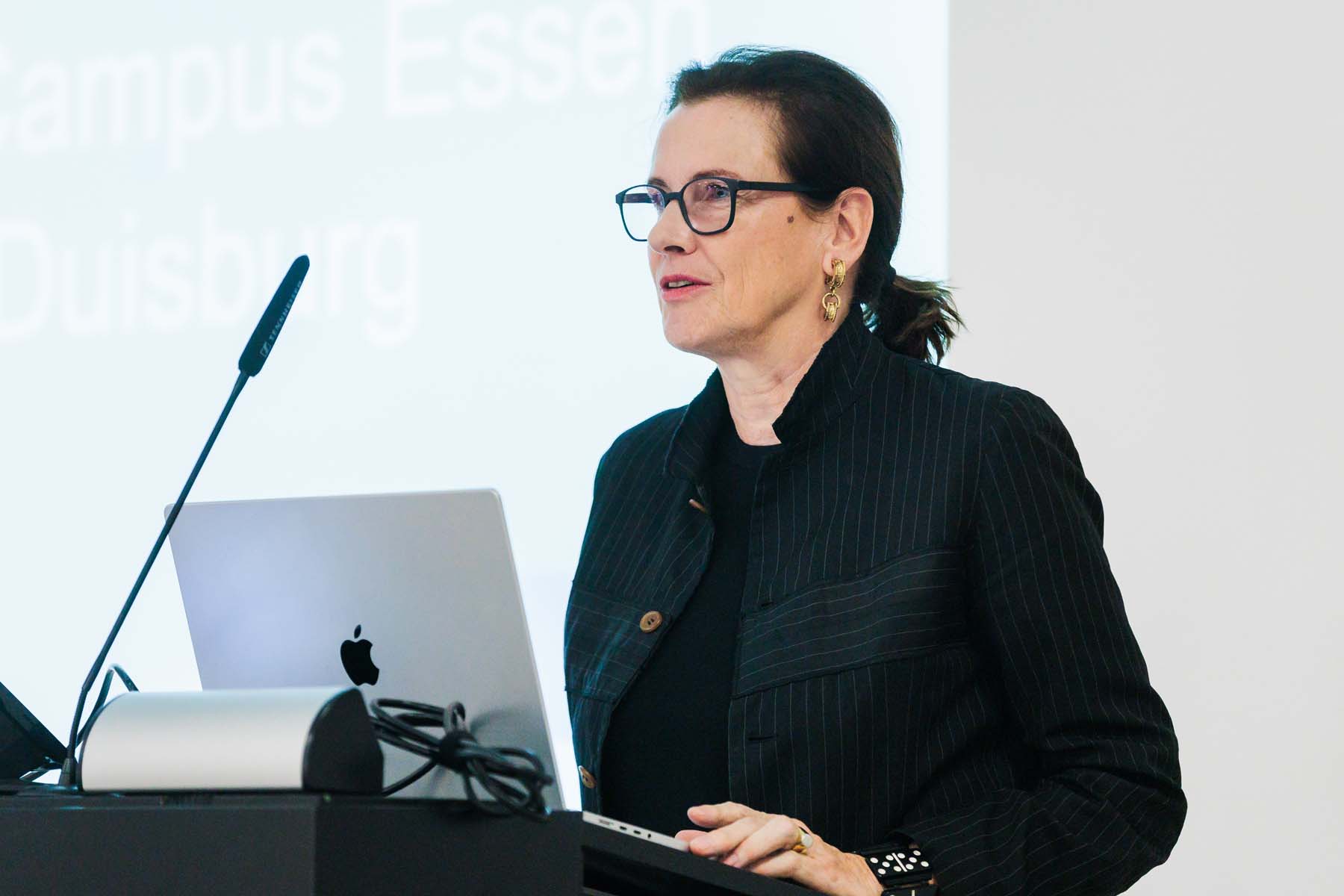 Die konstante Auseinandersetzung mit ihrer Umwelt, das hätten Wissenschaft und Kunst gemein, hob UDE-Rektorin Prof. Dr. Barbara Albert in ihrem Grußwort zur Eröffnung hervor. Zudem betonte sie Kunst als tiefen und bedeutsamen Teil der Universitätskultur.