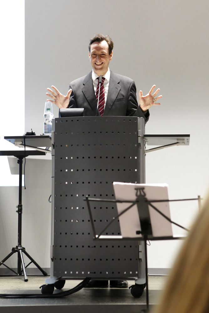 In seinem Festvortrag zum Thema "The Journey of Life in American Fiction and Intercultural Learning in the EFL Classroom" stellte Prof. Freese das Reisemotiv als Konstante der amerikanischen Erzählliteratur und insbesondere der Initiationsgeschichte dar. Es begegne uns als Flucht, als Suche oder als ziellose Bewegung, so Freese, und es begleite in der Intitiationsgeschichte eine Entwicklung von Unschuld und Unwissen zu Erfahrung und Desillusion. Anschließend plädierte Freese für den Einsatz von Initiationsnarrativen im Fremdsprachenunterricht, da mit deren Hilfe Sprachenlernen zu sozialem Lernen werden und interkulturelles Verständnis vermittelt werden könne.