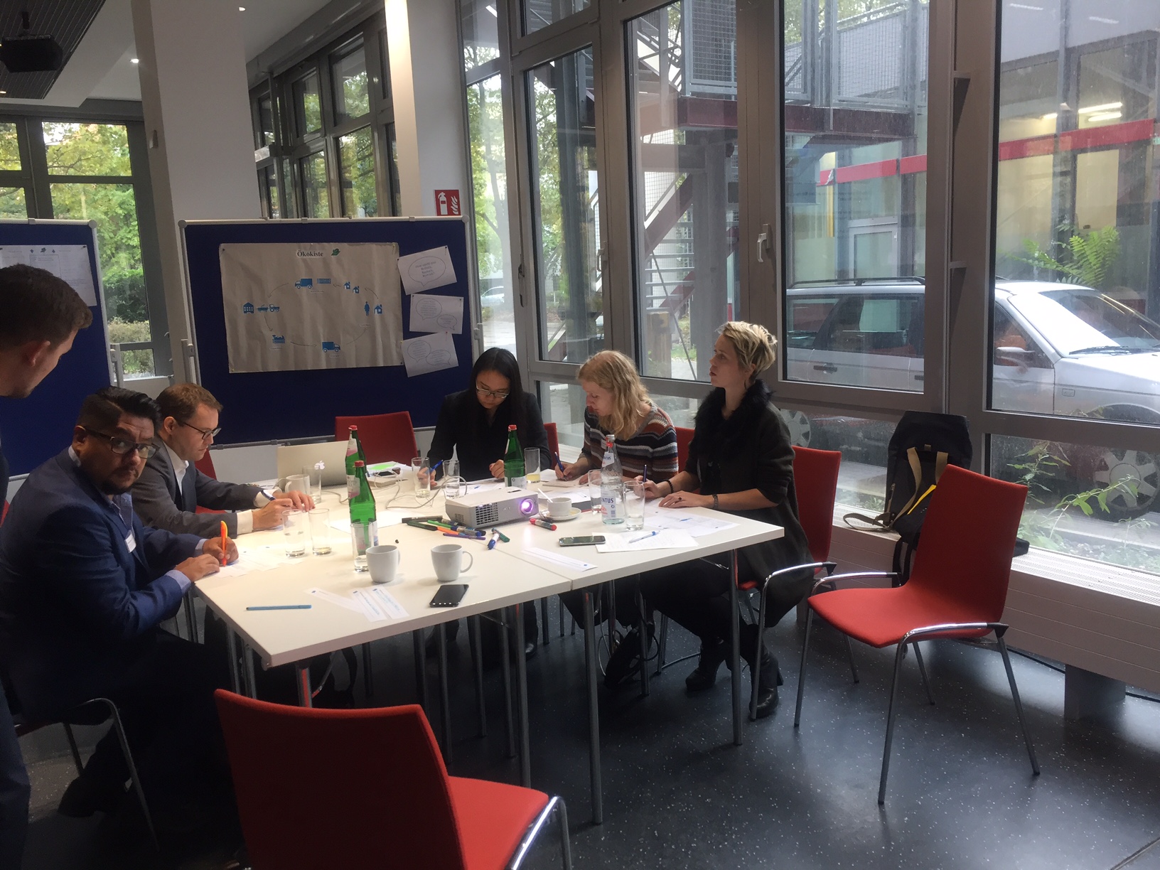 Drei Werkstatt-Gruppen arbeiten mit der Design Thinking-Mehthode an neuen Geschäftsmodellen für verbesserte Wertschöpfungskreisläufe in der Logistik: