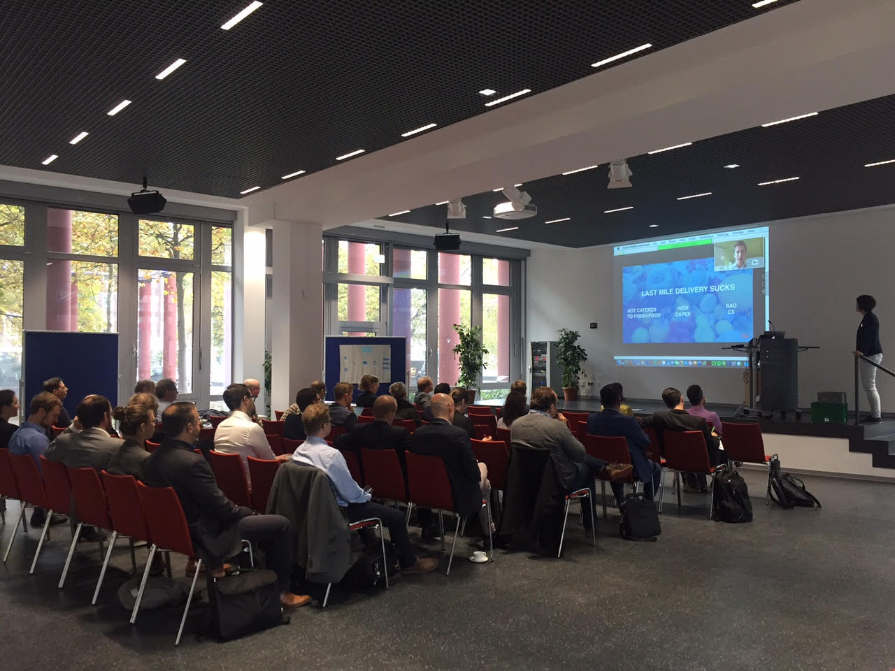 Nils Hempel des Logistikdienstleisters Fliit musste in letzter Minute seine Reise nach Essen absagen. Stattdessen wurde er per Video zugeschaltet und hielt seinen Vortrag aus dem Startup-Standort Berlin: