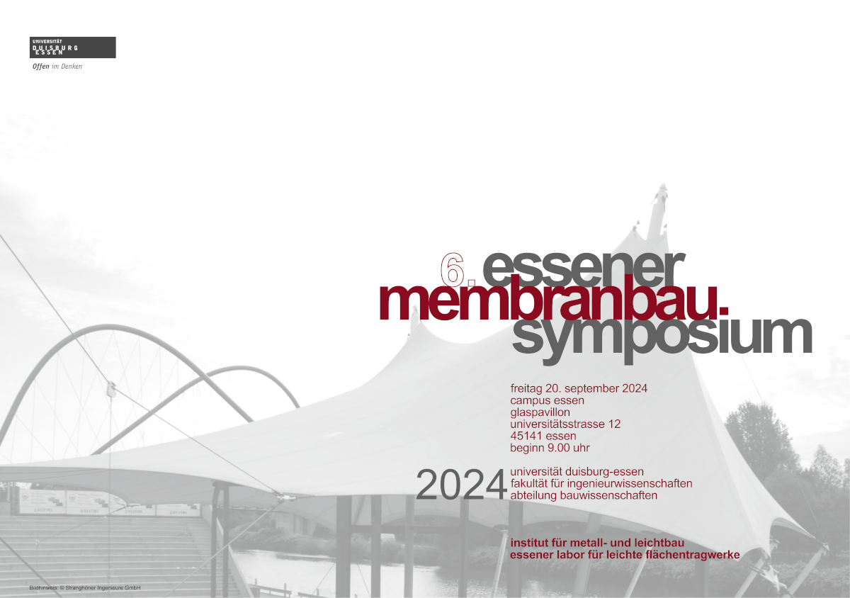 Das Institut für Metall- und Leichtbau der Universität Duisburg-Essen veranstaltet am Freitag, den 20. September 2024 das 6. Essener Membranbau Symposium.