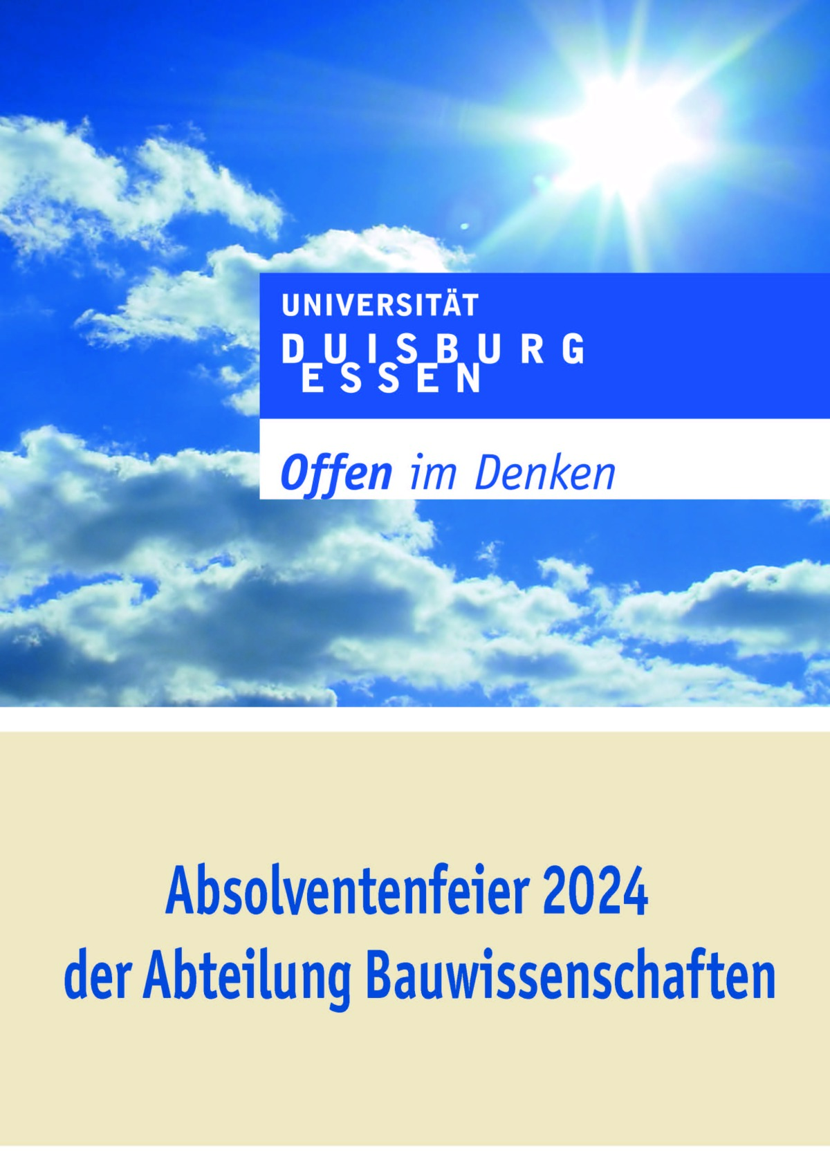Erstmals richtet die Abteilung Bauwissenschaften gemeinsam mit allen Ingenieurwissenschaften in Duisburg eine zentrale Absolventenfeier aus. Diese gemeinsame Veranstaltung geht ausdrücklich auf den Wunsch der Studierenden zurück und soll deren Abschluss in einem besonders würdigen Rahmen feiern.