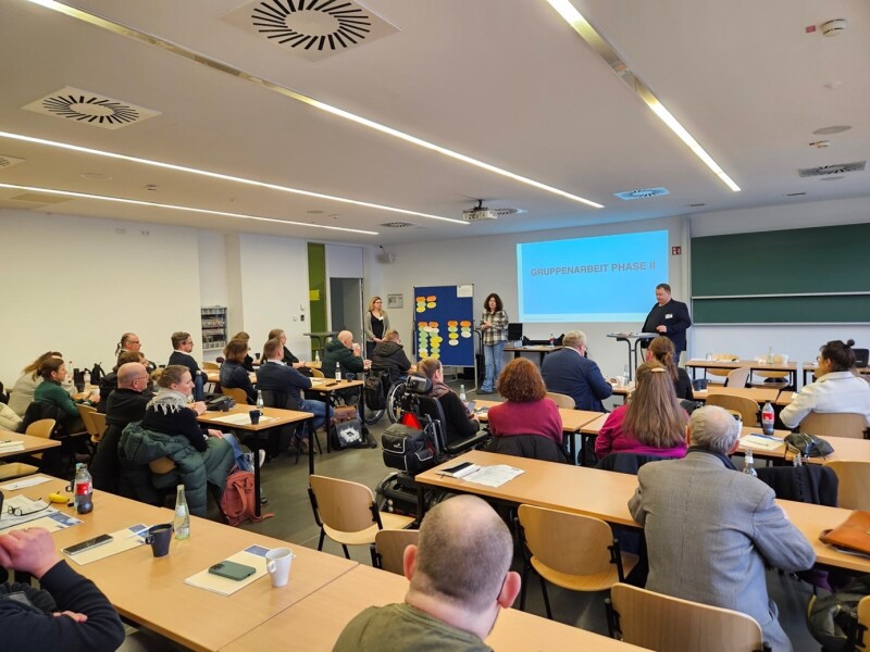 Der EPT-Workshop mit dem Titel „Teilhabe gestalten - Strukturbedingungen für einen inklusiveren Arbeitsmarkt“ fand am 06. Februar 2025 in Präsenz am Campus Essen der Universität Duisburg-Essen statt. Der Workshop war an die EPT-intern beteiligten Projektpartner*innen und an Vertreter*innen aus Politik, Verwaltung und sozialen Trägern gerichtet. Insgesamt nahmen rund 40 Personen am Workshop teil. Ziel war es, gemeinsam Perspektiven zu erarbeiten, um regionale Fördernetzwerke zu stärken und nachhaltige Strukturen für einen inklusiveren Arbeitsmarkt zu schaffen. Hierzu wurde auf Basis eines Fachvortrages im Plenum sowie in Arbeitsgruppen über entsprechende Chancen und Herausforderungen diskutiert.