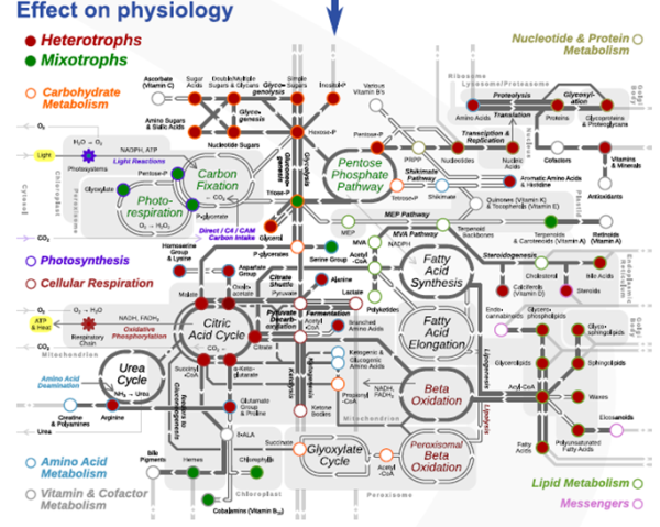 Der globale Kohlenstoffkreislauf (und folglich auch die Klimaregulierung) werden durch die Beziehungen zwischen biologischen Prozessen wie Stoffwechsel, Atmung und Gärung beeinflusst. Die Regulierung dieser Prozesse wird wiederum in hohem Maße von den Mikroben beeinflusst, insbesondere von den mixotrophen Mikroben, die Energie sowohl auf autotrophem als auch auf heterotrophem Wege gewinnen können. Wir untersuchen die Ursachen und Auswirkungen von evolutionären Verschiebungen in der Ernährungsweise dieser mixotrophen Mikroben. Unsere wichtigsten Modellorganismen sind Goldalgen (Chrysophyten), da von diesen Organismen historisch bekannt ist, dass sie ihre Ernährungsstrategien mehrfach geändert haben.