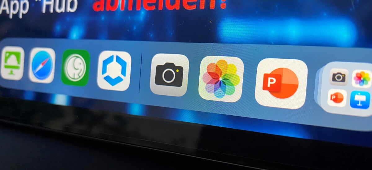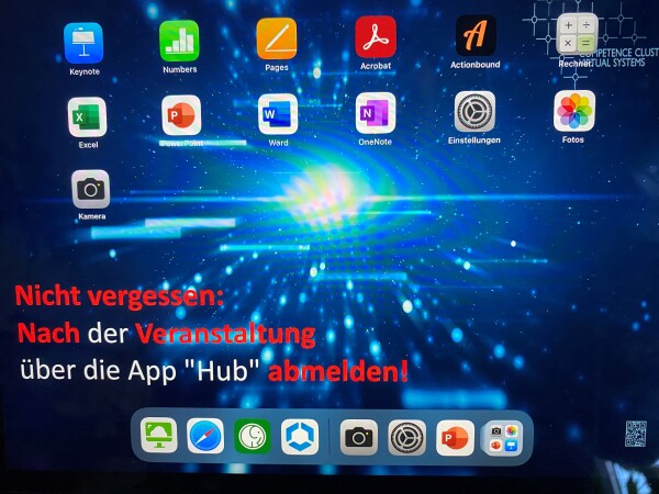- Am Ende der Session melden Sie sich zunächst bei Windows und dann auf dem iPad mit der App "Hub" wieder ab.