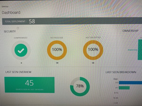 Die iPads werden zentral über das Mobile Device Management (MDM) WorkspaceOne verwaltet. Eine Installation über eine individuelle Apple-ID und den AppStore ist daher nicht möglich. Gleichzeitig können die iPads auch durch vollständiges Rücksetzen nicht aus dem Management herausgelöst, was einen Diebstahl sinnlos macht.