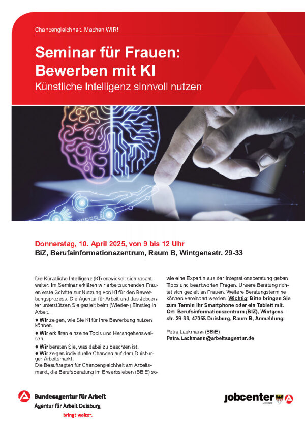 10.4.25 Seminar für Frauen: Bewerben mit KI Künstliche Intelligenz sinnvoll nutzen