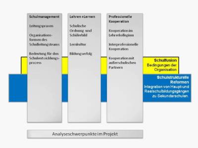 Einen zweiten Untersuchungsschwerpunkt stellten Praktiken des Schulmanagements dar, wobei wir einerseits schulgeschichtliche Entwicklungen rekonstruiert und andererseits in diesen differenten Traditionen von Einzelschulen unterschiedliche Leitungskulturen identifiziert haben, die mit verschiedenen Organisationsformen von Schulleitungen und variierenden Konzepten, Strategien und Realisierungen von Schulentwicklungsprozessen einhergehen.