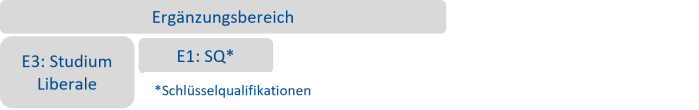 Der Ergänzungsbereich besteht aus dem Studium liberale, einem überfachlichen Studienangebot, das den Blick über den Tellerrand der eigenen Disziplin fördert sowie den Schlüsselqualifikationen, die Schlüsselkompetenzen wie z.B. Sprachen beinhalten.