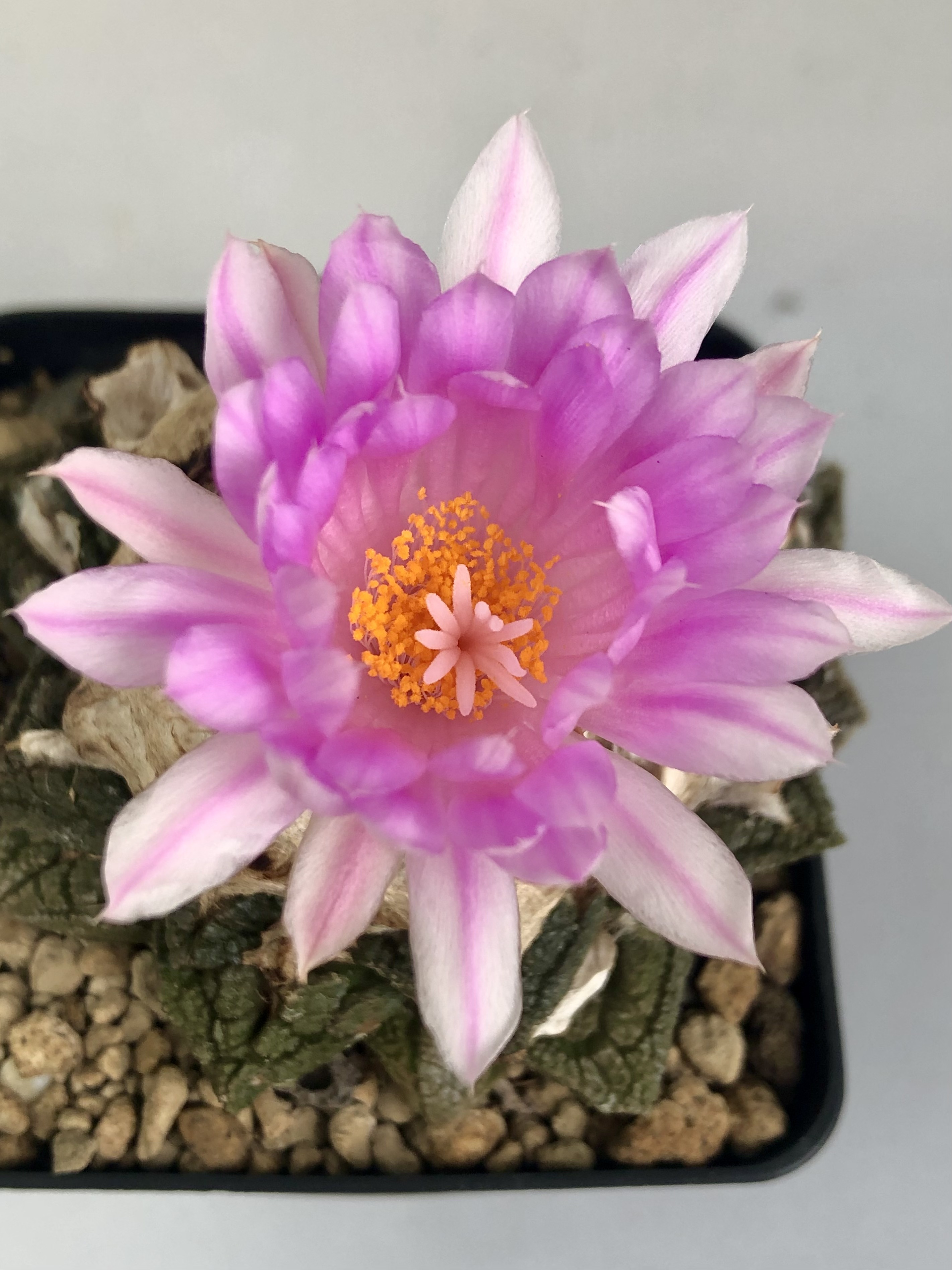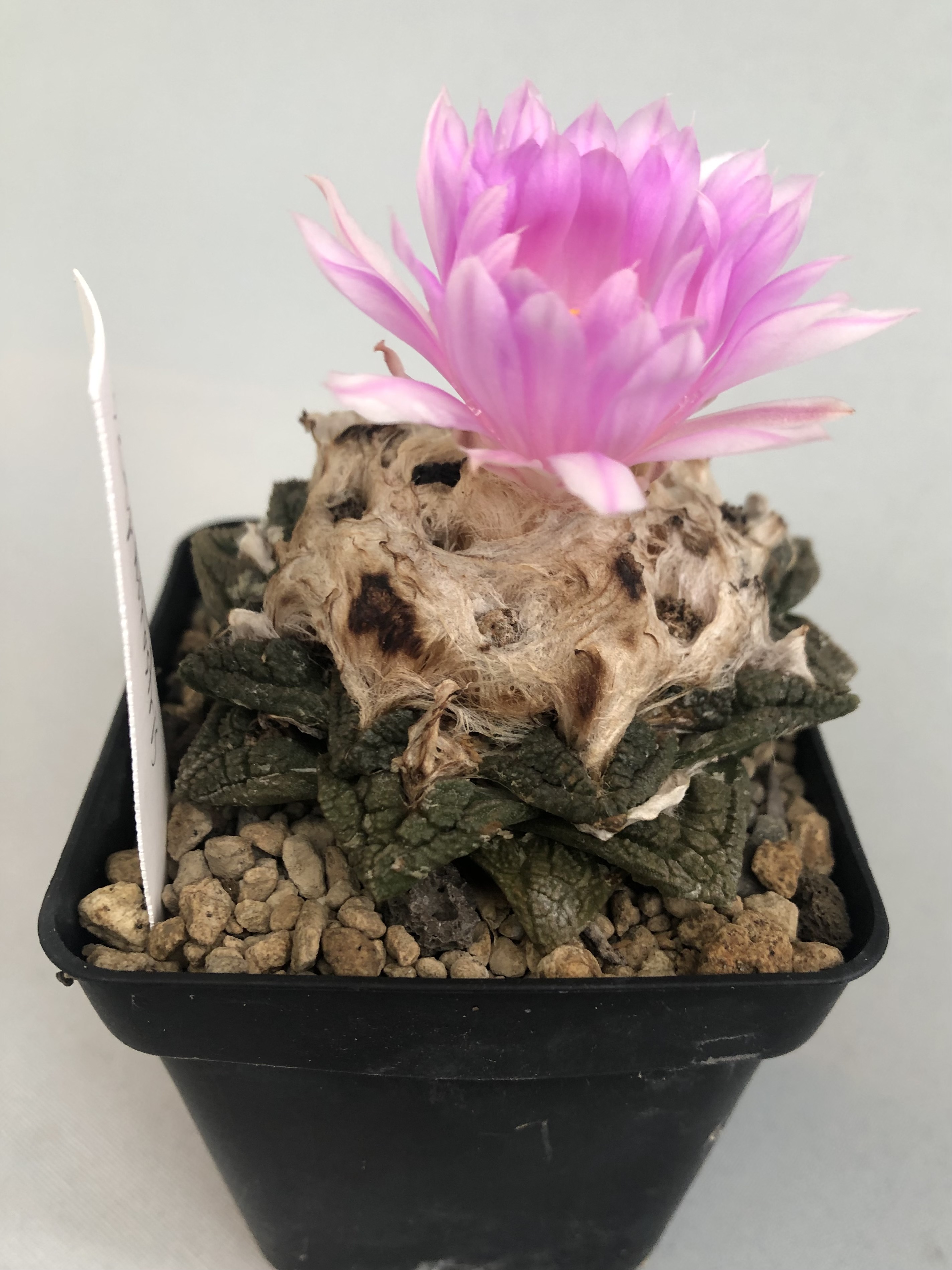 Abb. 1: Habitus (links) und Blüte (rechts) von Ariocarpus scaphirostris Boed..