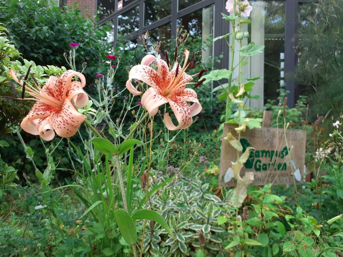 Das Herzstück unseres Gartens ist das Beet vor der Bib. 2016 lag es noch brach - trockene Erde, wenige Büsche und viel Bauschutt. Ein engagierter Student und Alumnus Kurt Walter wurden spontan aktiv und setzten erste Pflänzchen auf eigene Hand. Schon bald wuchs die Gruppe, um das prominent gelegene Beet vor der Hauptbibliothek schöner zu gestalten.