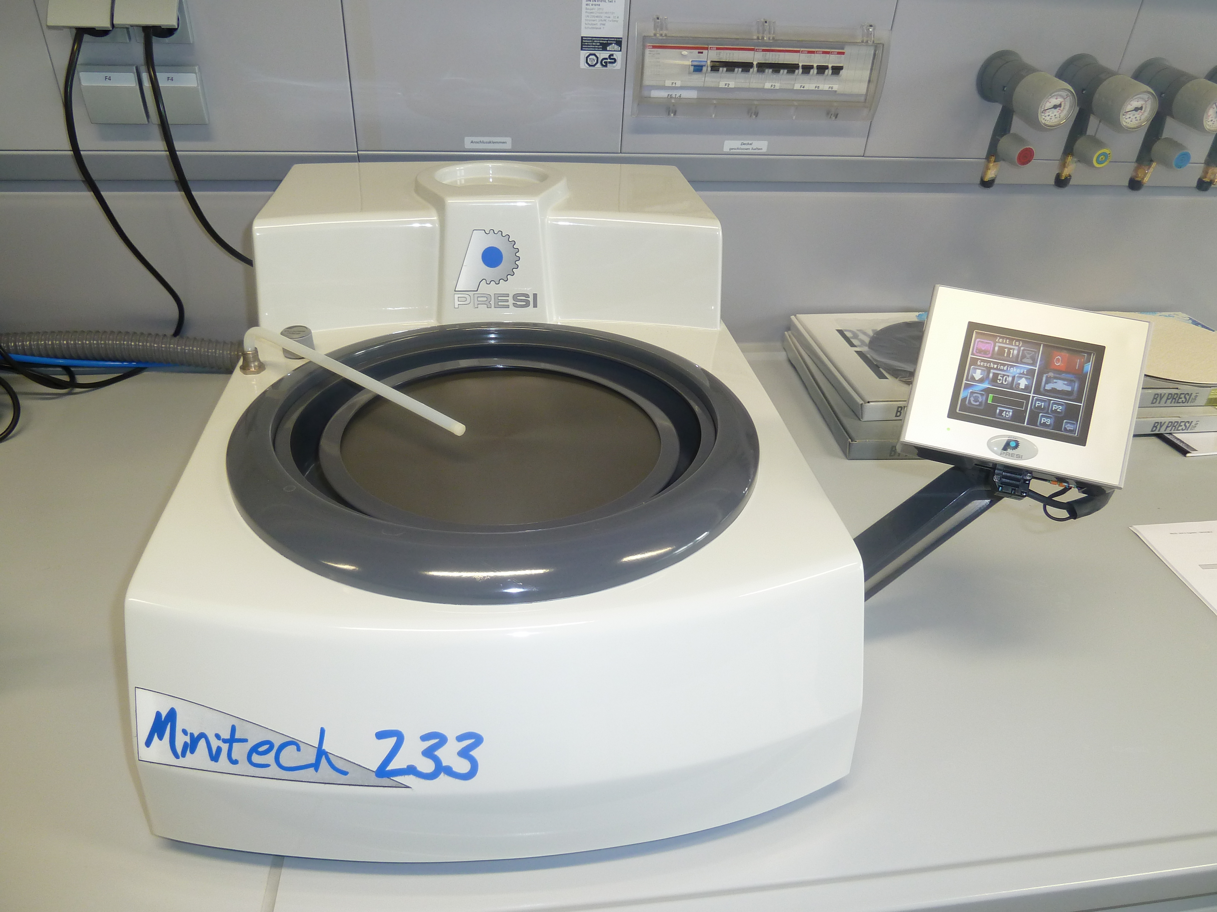 Die Minitech 233 ist eine einspindelige manuelle Schleif- und Poliermaschine für die Aufnahme von Schleif- / Polierscheiben mit einem Durchmesser von 250 mm.