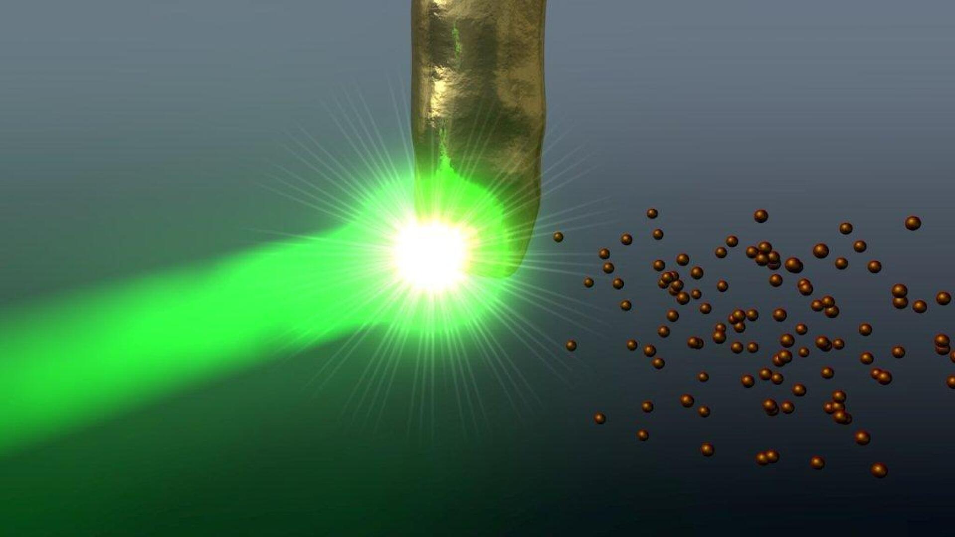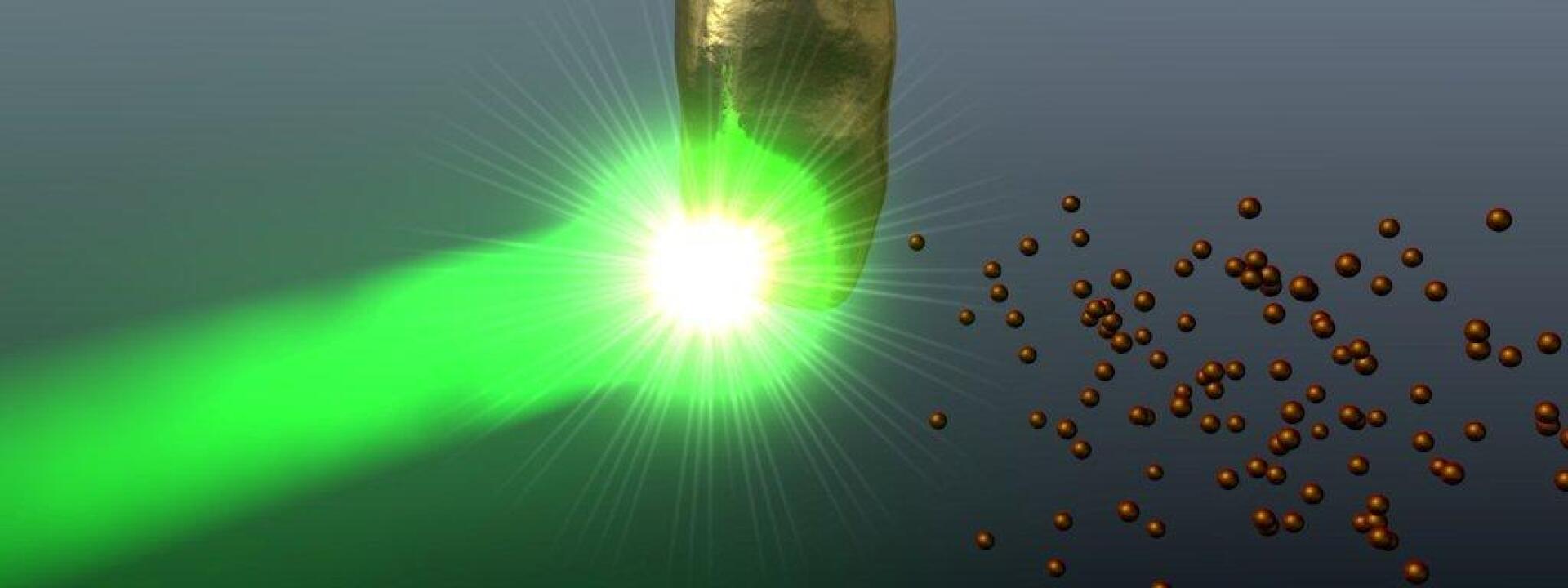 Bei der Laserablation in der Flüssigphase wird per Laserpuls Material aus der Oberfläche eines Targets verdampft. Diese Form der Synthese funktioniert im Gegensatz zu anderen Flüssigprozessen ligandenfrei, denn es sind keine Stabilisatoren nötig und auch eine aufwändige Aufreinigung des Produkts entfällt. So stellen wir hochreine Partikel mit ligandenfreier Oberfläche her, die z. B. für die Anwendung in der Katalyse ideal geeignet sind.