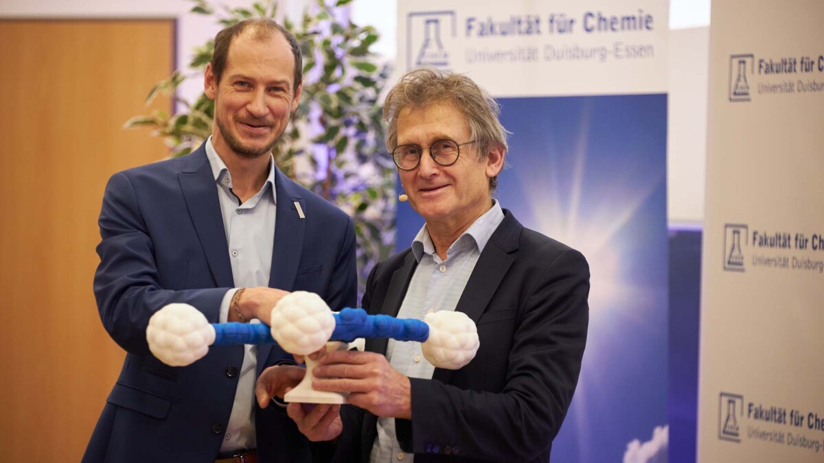 Im Dezember 2025 hielt Nobelpreisträger Professor Bernard "Ben" Feringa die Bruno Werdelmann-Vorlesung an der UDE. Der Chemiker präsentierte seine bahnbrechende Forschung zu molekularen Maschinen – Molekülen, die sich gezielt bewegen und vielfältige Anwendungen ermöglichen, etwa in der Medizin, um Wirkstoffe präzise an den gewünschten Ort im Körper zu transportieren. Ein Interview mit ihm haben wir bei LinkedIn veröffentlicht.