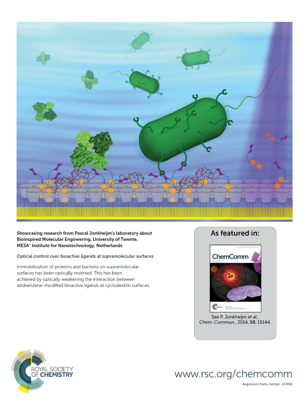 19. „Optical control over bioactive ligands at supramolecular surfaces” Chem. Commun., 2014, 50, 15144-15147, Jens Voskuhl, Srikrishnan Sankaran and Pascal Jonkheijm*.