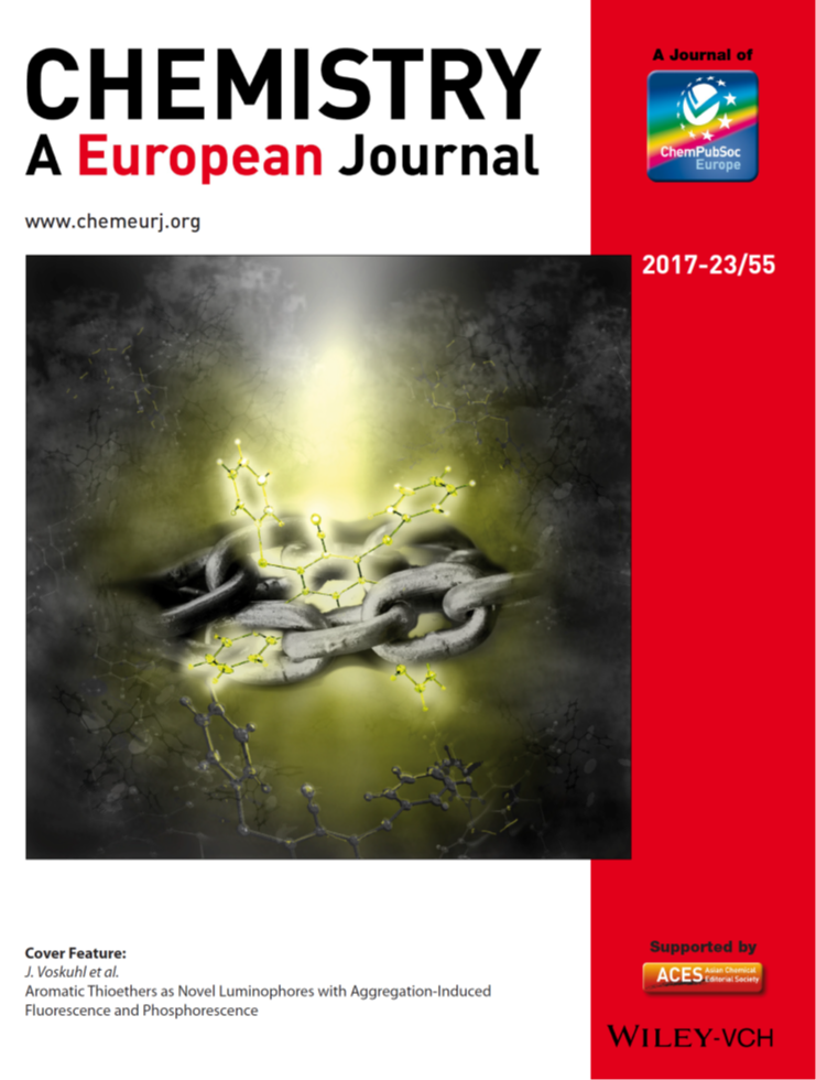 30. "Aromatic Thioethers as novel Luminophores with Aggregation- Induced Fluorescence and phosphorescence", Chem Eur. J., 2017, 23, 13660-13668, Steffen Riebe, Cecilia Vallet, Felix van der Vight, Dario Gonzalez-Abradelo, Christoph Wölper, Cristian A. Strassert, Georg Jansen, Shirley Knauer and Jens Voskuhl*.