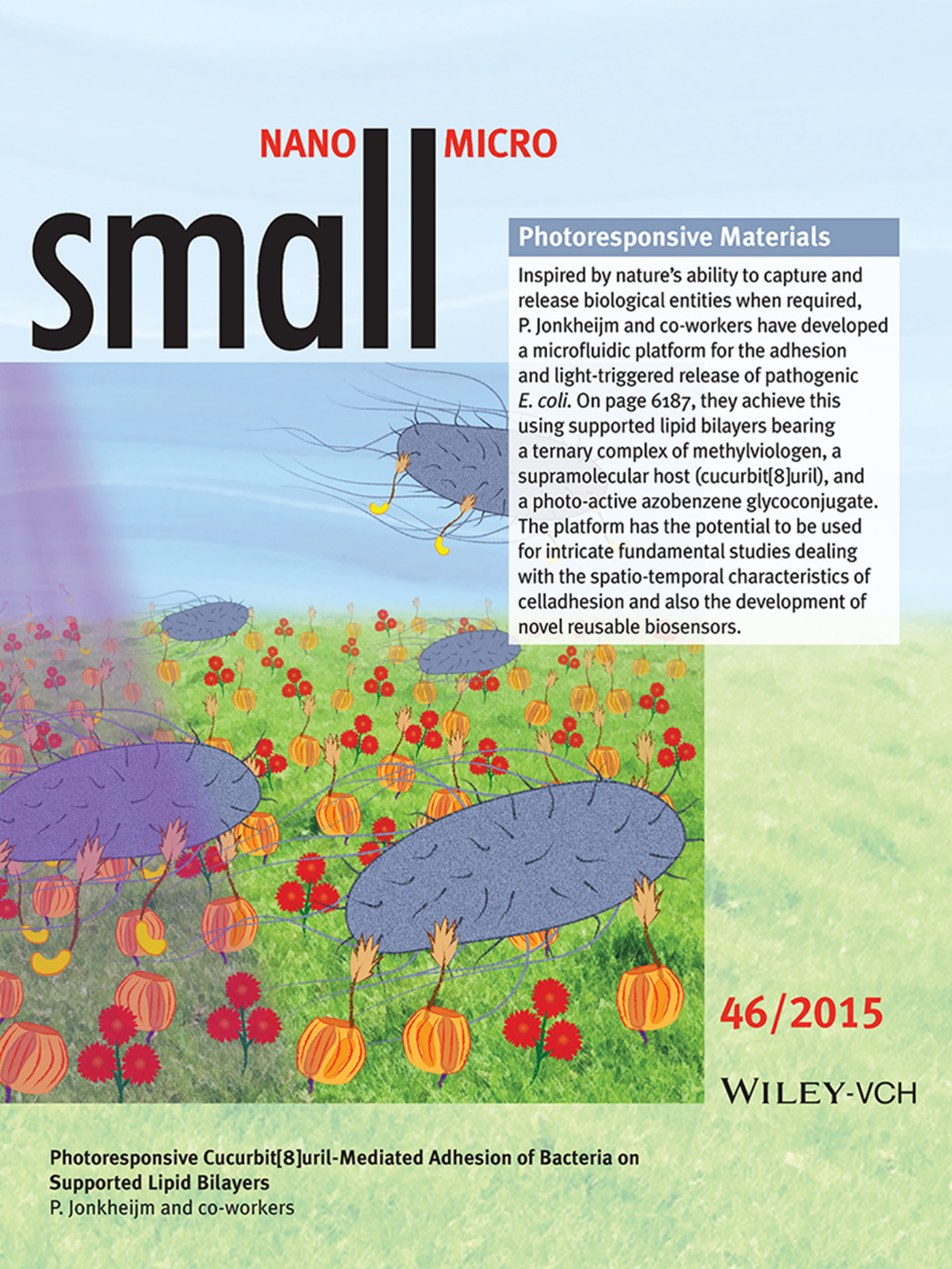 22. “Photoresponsive Cucurbit[8]uril-Mediated Adhesion of Bacteria on Supported Lipid Bilayers”, Small, 2015, 26, 6184. Shrikrishnan Sankaran, Jasper van Weerd, Jens Voskuhl, Marcel Karperien and Pascal Jonkheijm*.