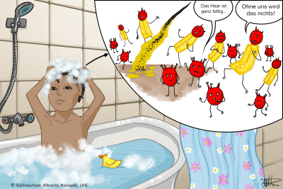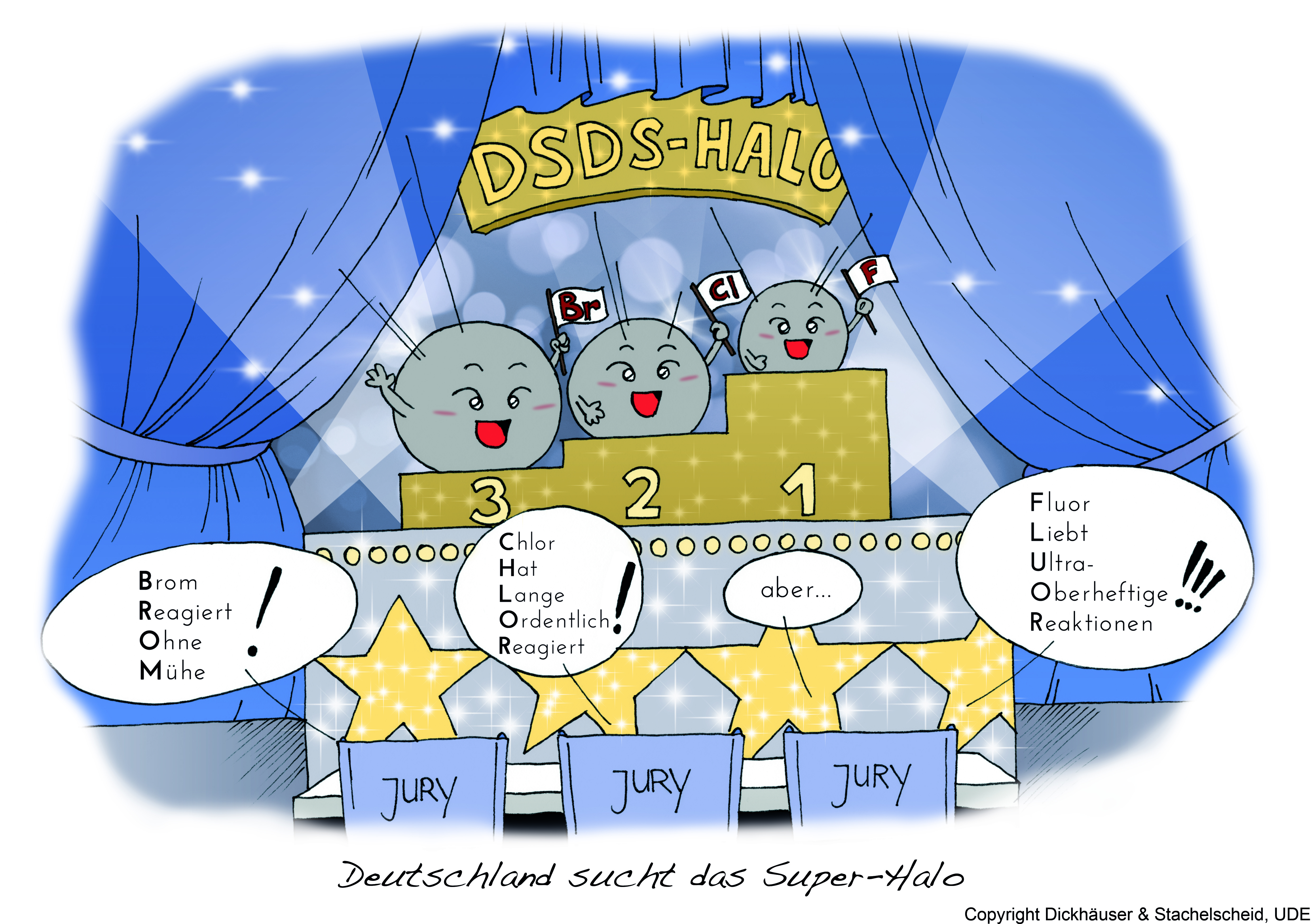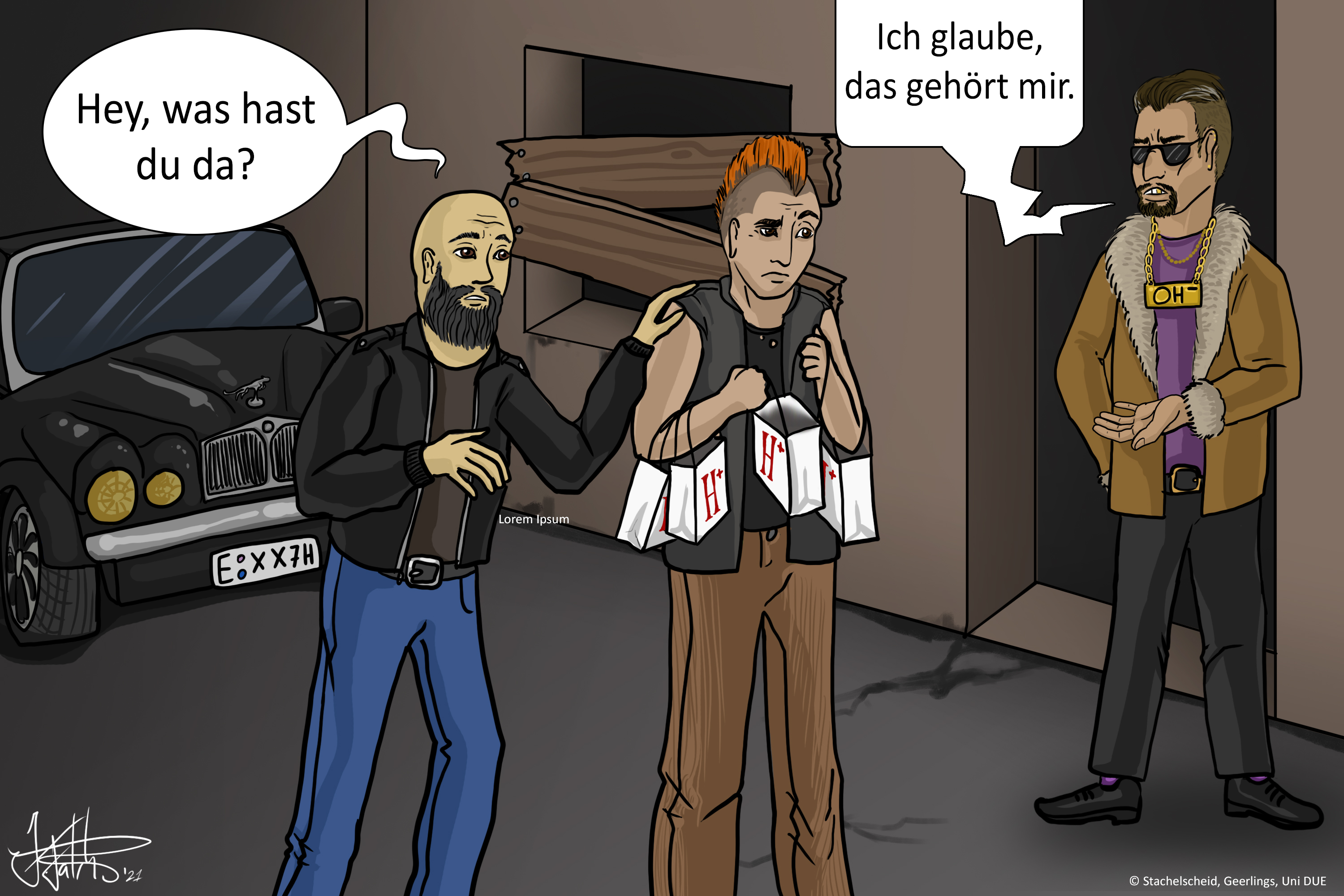 Die Laborabbildung gibt die für Schülerexperimente in Gruppenarbeit zu verteilenden Aufgaben wieder und ist ohne fachspezifischen Humor dargestellt. Separate Abbildungen der entsprechenden Protagonisten ermöglichen eine Zuordnung in von Lehrkräften selbst erstellten experimentellen Arbeitsaufträgen und bieten für die Lernenden einen attraktiven Wiederkennungswert. |