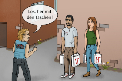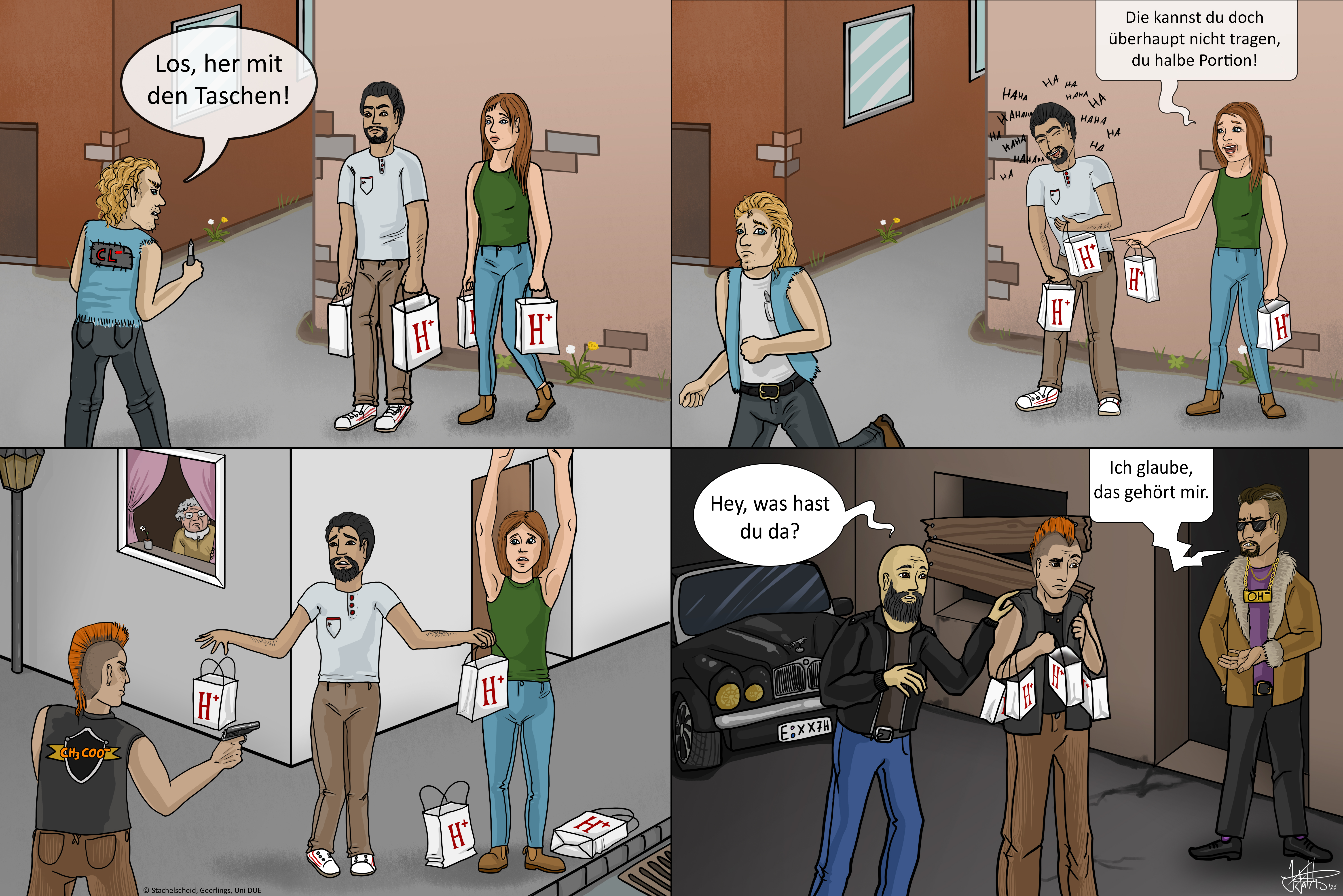 Wir laden alle Lehrende, Lernende und Interessierte herzlich ein, die Abbildungen runterzuladen, zu diskutieren und zu interpretieren sowie in Lehr-Lernmaterialien einzusetzen. Um für individuelle Lernmaterialien Gestaltungsvielfalt zu ermöglichen und damit auf unterschiedliches Vorwissen von Lernenden oder differenzierte angestrebte Lernziele eingehen zu können, sind teilweise zum selben Bild verschiedene Sprechblasen abgebildet bzw. die Situation leicht verändert. Mehrere Bilder, die zusammengehören, sind nicht immer nur als Gruppenbild aufgeführt, sondern auch als Einzelbilder für den sukzessiven Einsatz. Sprechblasen ohne Texte ermöglichen es den Lernenden eigene Fachtexte zu kreieren. Entwickeln auch Sie als Lehrkraft kreative Ideen mit Lernpotential. Über Resonanz zu Erfahrungen im Unterrichtseinsatz sowie zu Vor- und Nachteilen der Abbildungen würden wir uns freuen.