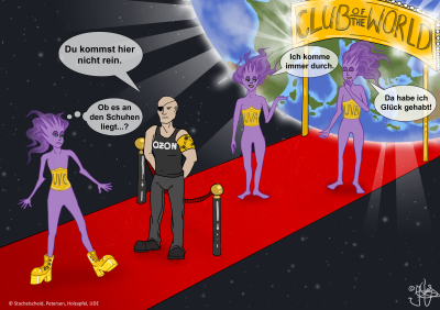 Die geschlossenen und offenen Türen zu den drei Clubs sowie die verschiedenen Sprechblasen lassen sich für unterschiedliche Lernziele nutzen.