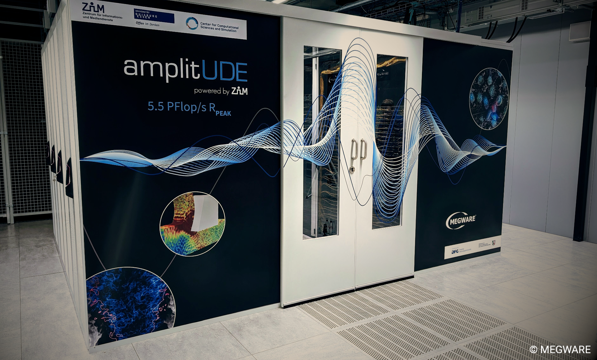Seit Mitte 2024 ist der neue Großrechner "amplitUDE" an der UDE aufgestellt und befindet sich noch im erweiterten Testbetrieb. Anfang Dezember wird er offiziell in Betrieb genommen und so den Forschenden an der UDE zusätzliche Ressourcen für massiv parallele Rechenleistung zur Verfügung stellen. Besonders die Arbeitsgruppen aus den Ingenieurwissenschaften, Physik, Chemie und Biologie werden dadurch neue Möglichkeiten haben, ihre Forschungsarbeit im Bereich des Hochleistungsrechnen direkt auf einem TIER3-System an der UDE zu realisieren.
