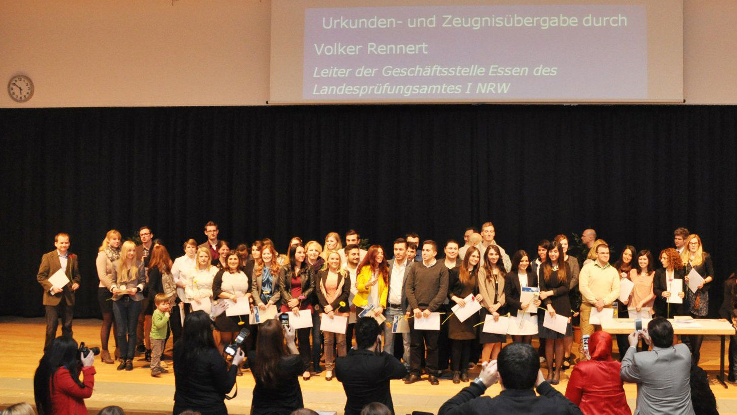[18.03.2013] Das ist ein Rekord: Rund 600 Menschen versammelten sich jetzt zur AbsolventInnenfeier des Zentrums für Lehrerbildung (ZLB) im Essener Audimax. Insgesamt 232 angehende LeherInnen bekamen ihre Urkunden überreicht, die Besten der vergangenen zwei Prüfungsphasen erhielten eine Auszeichnung.