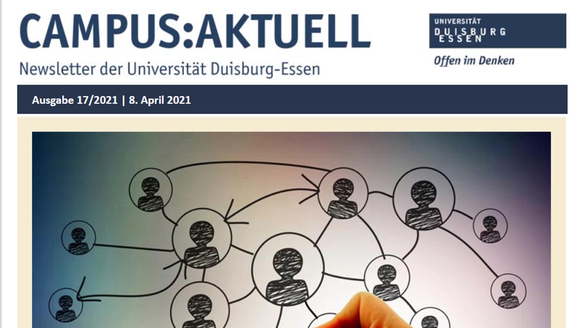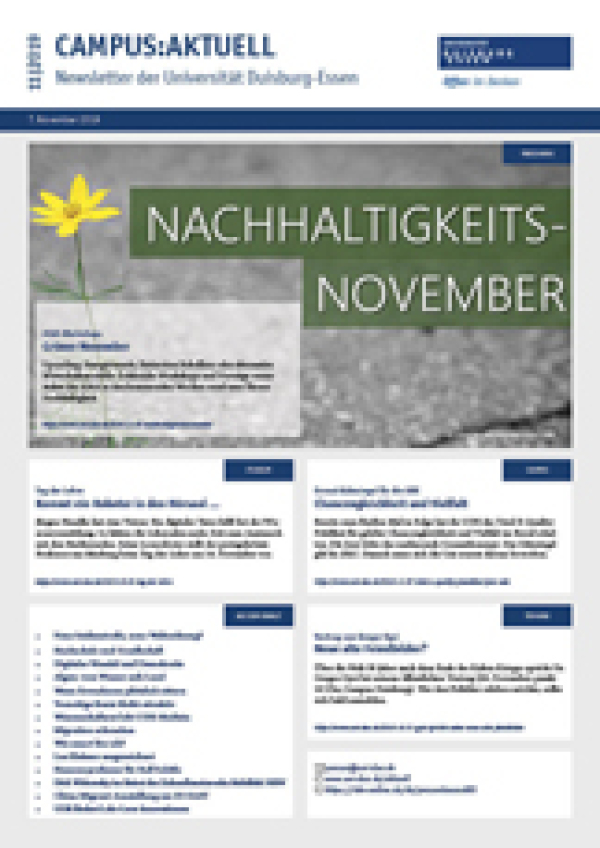 Regelmäßig erhalten alle Hochschulangehörigen mit CAMPUS:AKTUELL alle Infos aus der und rund um die UDE.