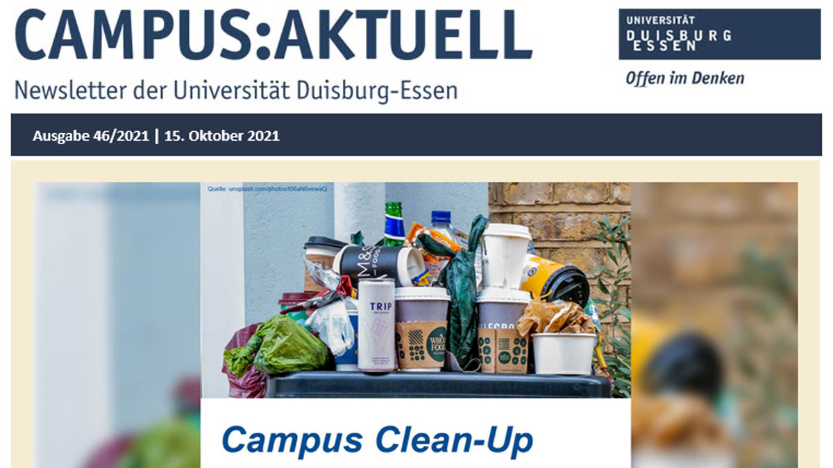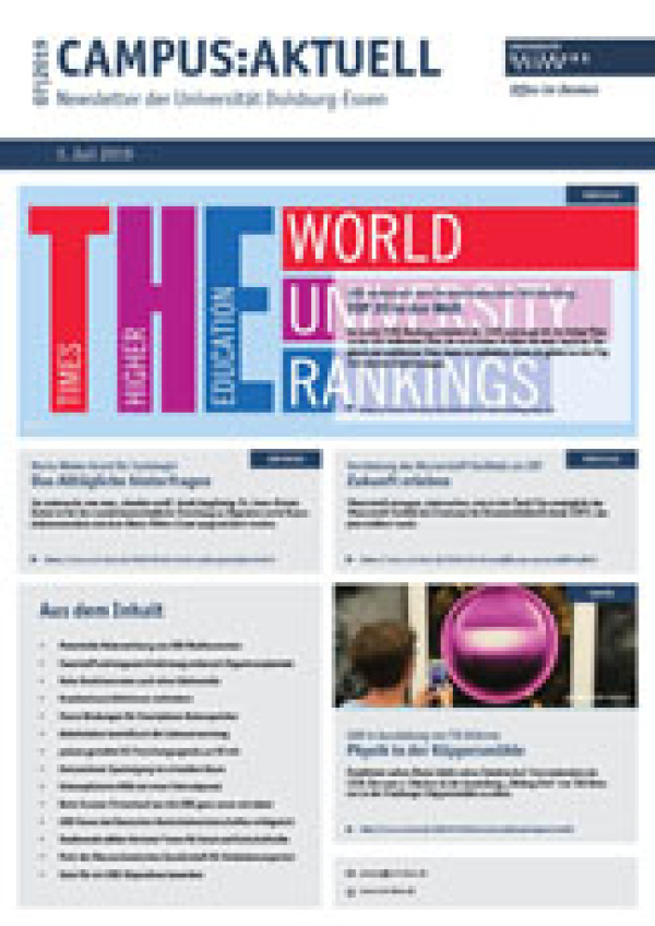 Regelmäßig erhalten alle Hochschulangehörigen mit CAMPUS:AKTUELL alle Infos aus der und rund um die UDE.