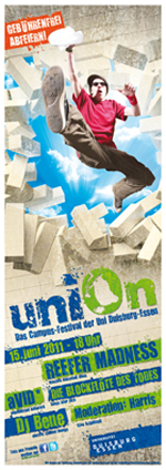 Zwei Campi, zwei Städte, eine Uni! Junge Leute zwischen Wesel und Dortmund, zwischen Mönchengladbach und Herten studieren hier. Und aus der ganzen Welt! Dazu stellen wir eine clevere Kampagne vor, die unsere Hochschule national und international unverwechselbar positionieren wird. Das muss gefeiert werden, willkommen bei uniOn!