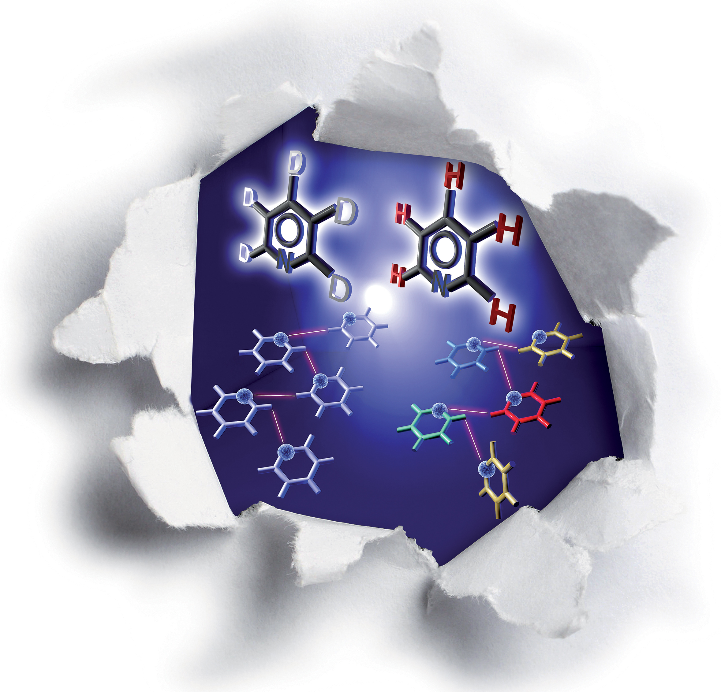 „Ersetzt man die Wasserstoffatome im Wassermolekül durch ihre schwerere Variante – das Deuterium – so erhält man schweres Wasser. Dies ist chemisch kaum vom normalen Wasser zu unterscheiden. Trotzdem ist es giftig, denn es stört die hochempfindlichen biochemischen Prozesse im Körper, und ein Stoffwechselversagen ist die Folge“, erklärt Prof. Dr. Roland Boese die Grundlagen. Forscher seiner Arbeitsgruppe fanden heraus, dass man Wasserstoff in organischen Molekülen durch Deuterium ersetzen und so ebenfalls entscheidende Veränderungen erreichen kann. Sie nutzten dafür Pyridin, eine stickstoffhaltige Verbindung mit starkem Geruch, die u.a. in Steinkohlenteer vorkommt und z.B. als Lösungsmittel in Farbstoffen und Insektiziden eingesetzt wird.